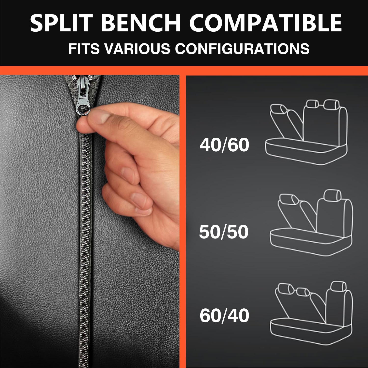 Rear seat covers come with three adjustable zippers, allowing them to accommodate 60/40 or 40/60 split seats. Whether you fold down one side or both, the cover adjusts with you.