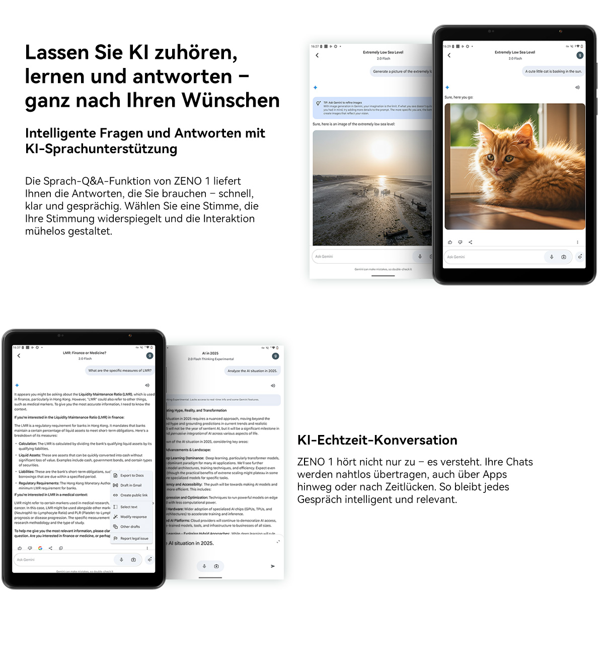 Answer:Ja. Das ZENO1 4G LTE Tablet-System wird mit 4 GB Arbeitsspeicher geliefert, und auf der Einstellungsseite können weitere 8 GB virtueller Speicher hinzugefügt werden. Bei der tatsächlichen Verwendung können Sie bis zu 12 GB Arbeitsspeicher verwenden.