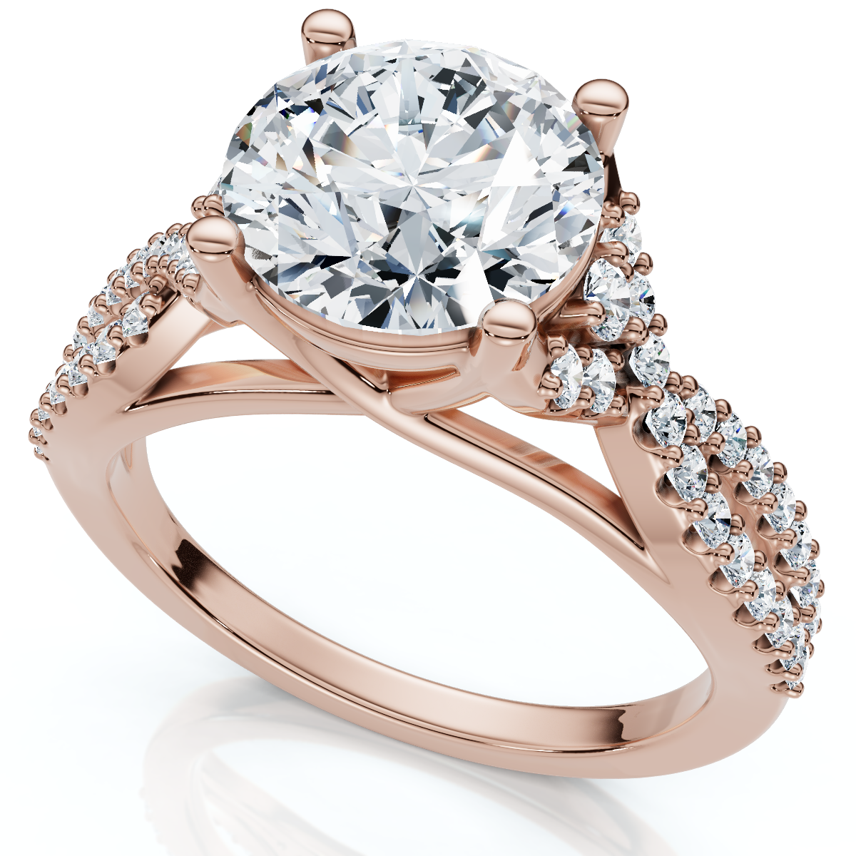 This stunning Certified 2ct Diamond Crossover Split Engagement Ring is a modern and elegant symbol of your commitment. The ring features a brilliant round lab-grown diamond at its center, beautifully complemented by a unique split-shank. The two pavé-set diamond rows gracefully cross over each other, creating a captivating and luxurious design that enhances the center stone's sparkle from every angle. Features: Total Carat Weight: A total of 2ct of dazzling diamonds. Center Diamond: A certified, brilliant round-cut lab-grown diamond. Design: A modern crossover split shank with pavé-set diamonds. Diamond Quality: Certified and lab-grown.