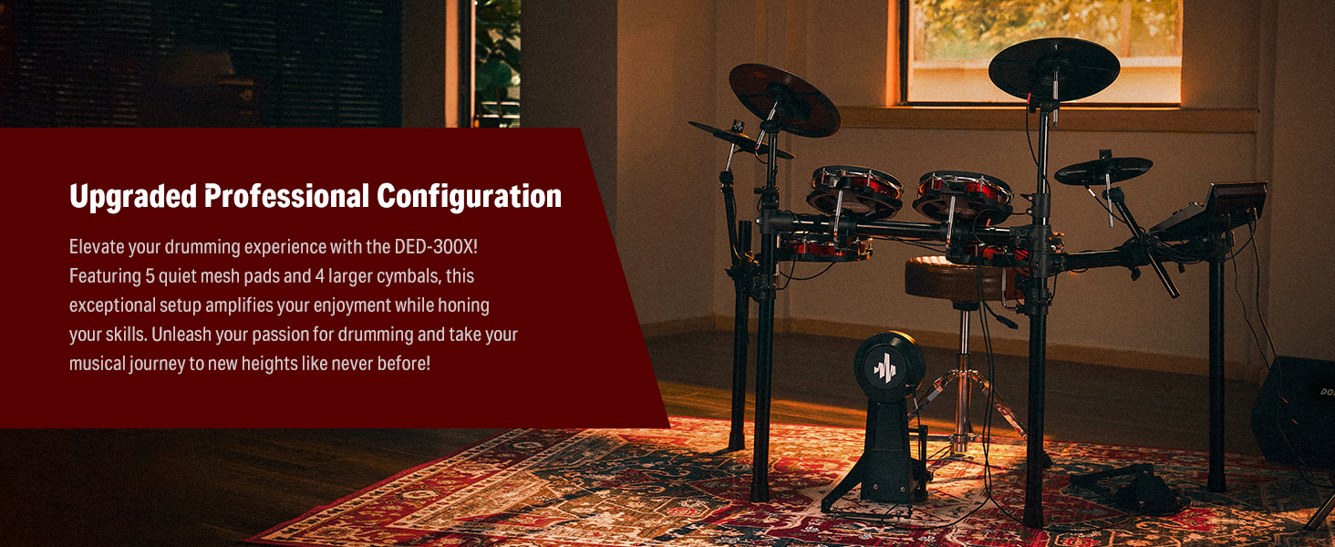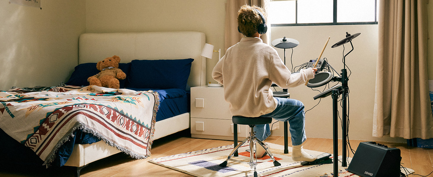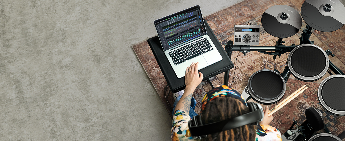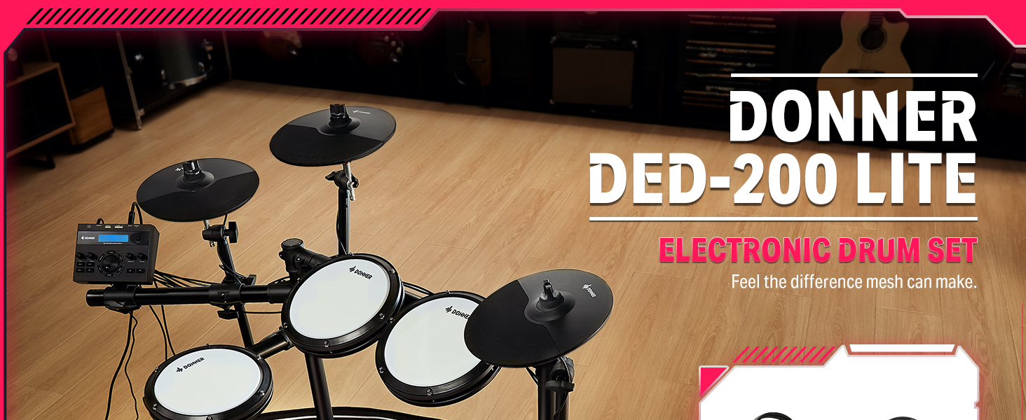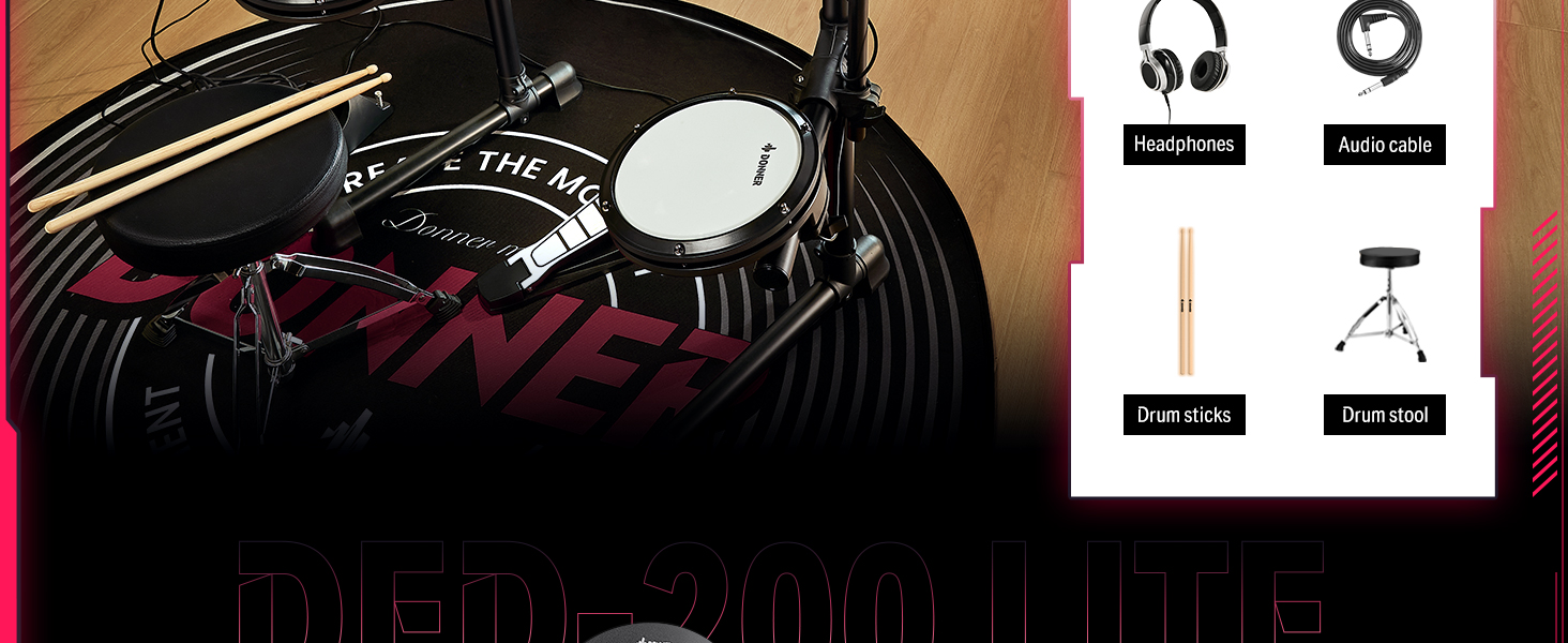 γ Great for Home Use γWith a USB MIDI and AUX IN port for playing along with various drum accompaniments, and a headphone jack for silent practice, This junior drum set is an excellent choice for apartment living. Whether you're using software or just practicing at home, the DED-200 Lite will help you grow and progress
