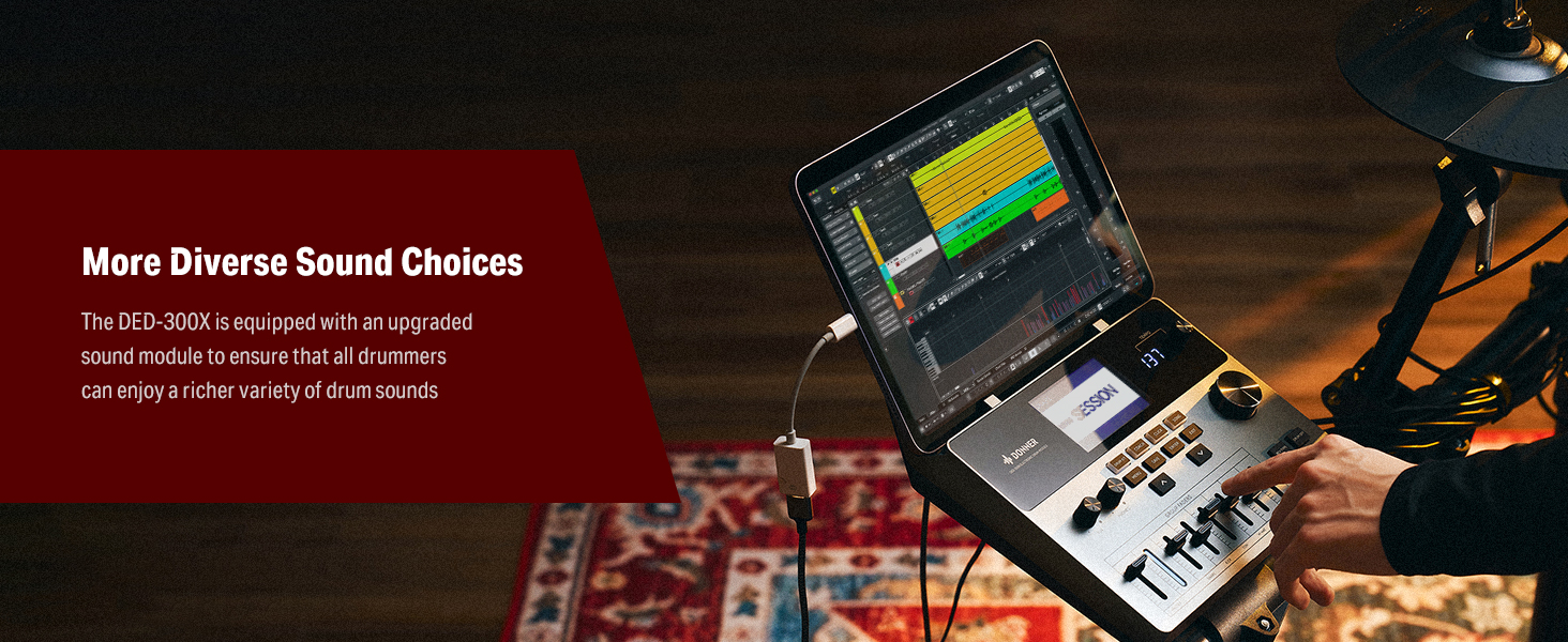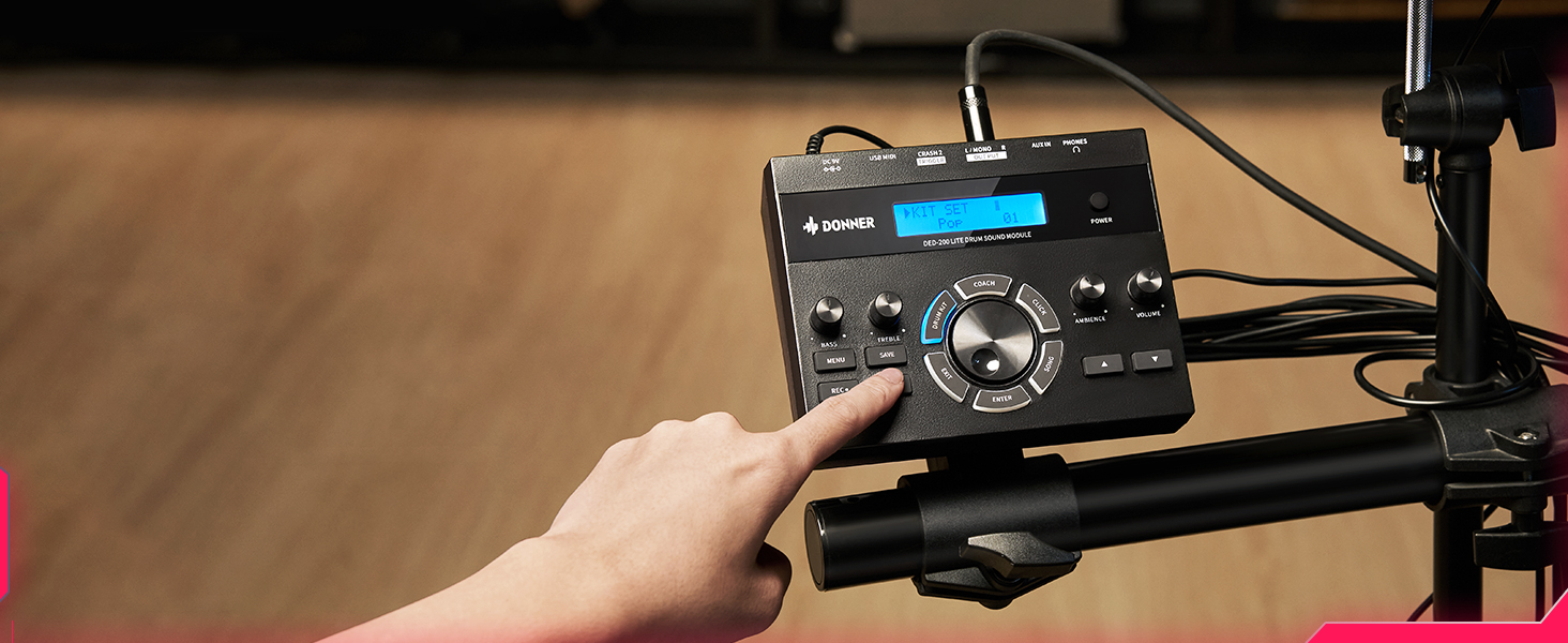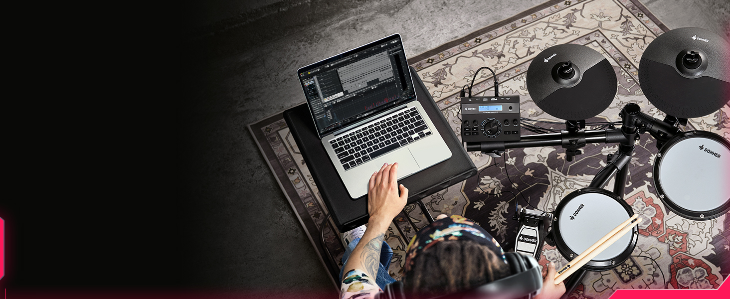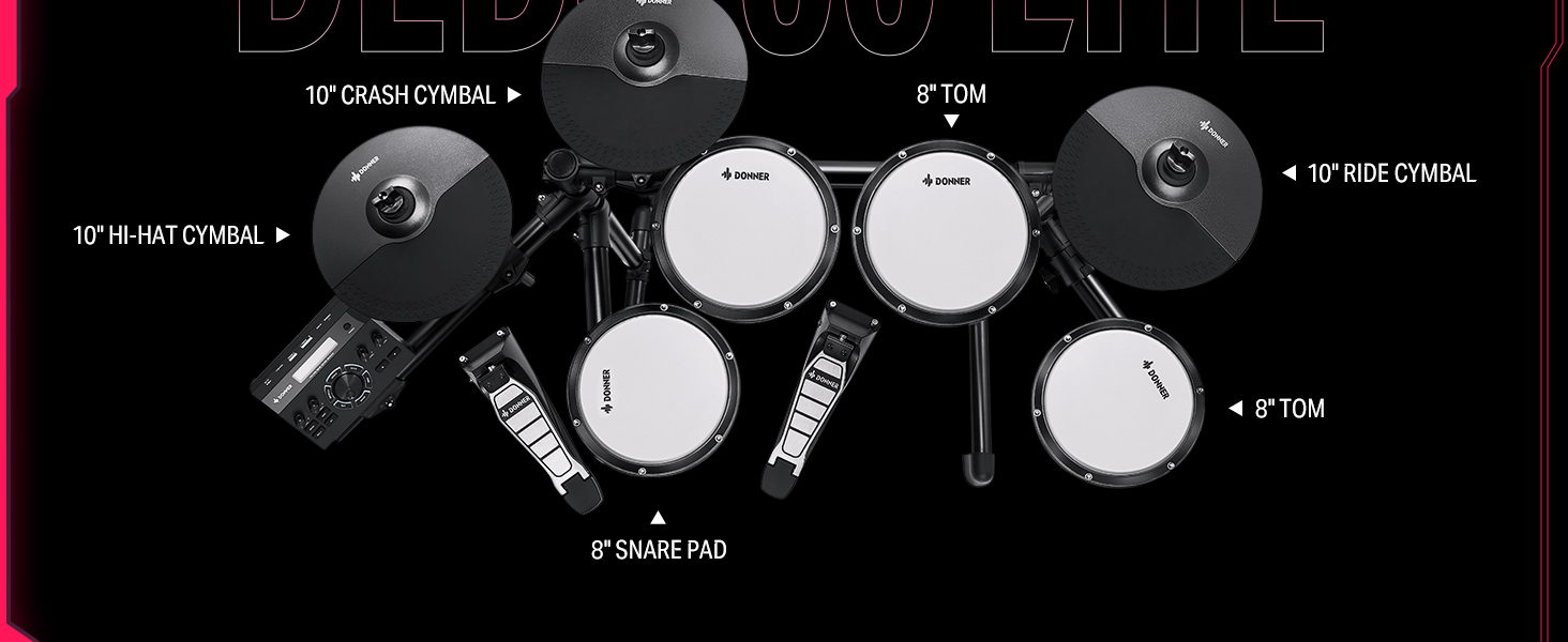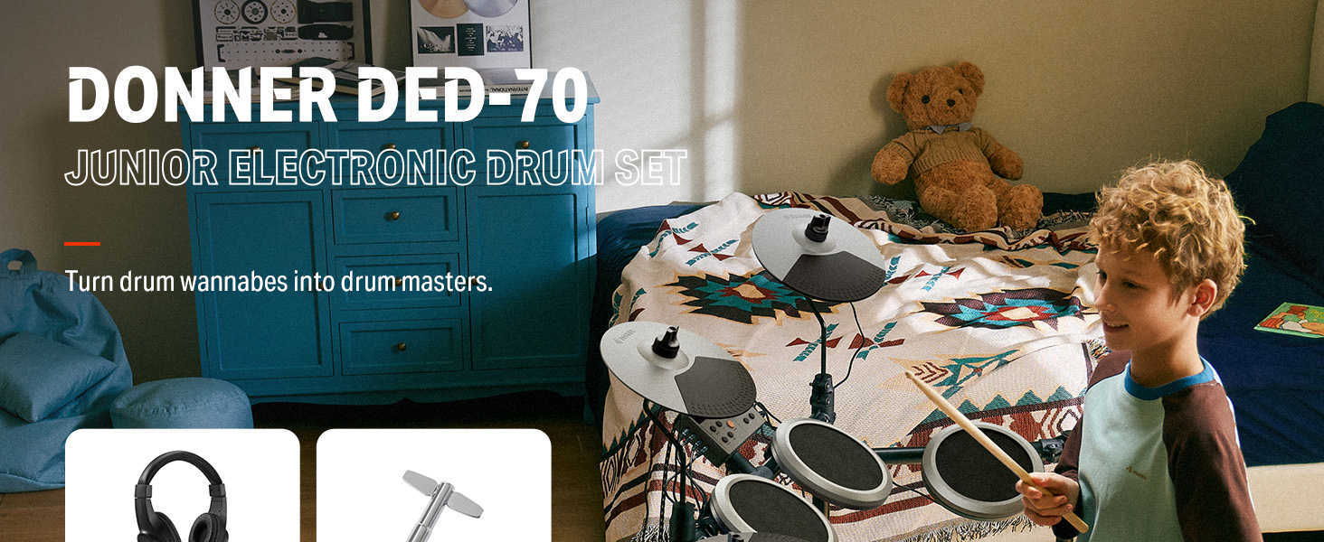 γ Great for Home Use γWith a USB MIDI and AUX IN port for playing along with various drum accompaniments, and a headphone jack for silent practice, This junior drum set is an excellent choice for apartment living. Whether you're using software or just practicing at home, the DED-200 Lite will help you grow and progress