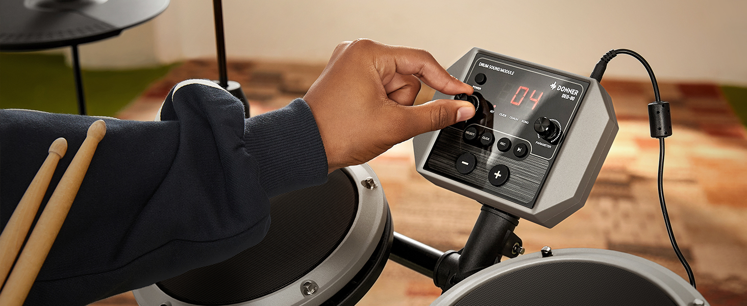 γ Powerful Learning Tools for Beginners γThe DED-200 Lite electric drum kit features 450 sound options, 31 drum kits that offer the perfect choice for drummers of all skill levels. Comes with 50 built-in play-along tracks, metronome, auxiliary input, and drum coach, all designed to hone and develop beginners' drumming skills