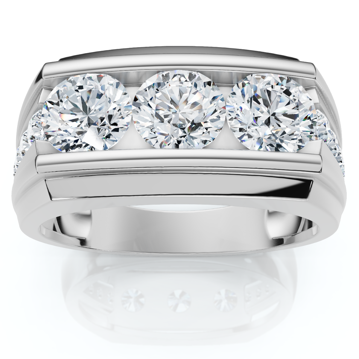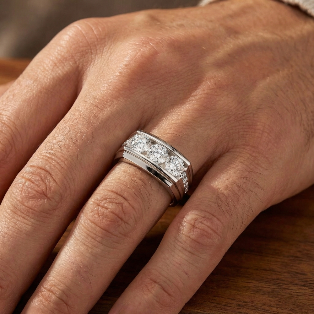 Celebrate your lasting commitment with this distinguished Men's 2Ct Diamond Accented Wedding Anniversary Ring. This sophisticated ring features a wide, polished band with a single, continuous row of brilliant lab-grown diamonds set in a recessed channel. The clean lines and subtle sparkle offer a modern and luxurious take on a classic men's band, perfect for daily wear or to commemorate a special occasion. Features: Design: A wide, polished band with a single row of channel-set diamond accents. Total Carat Weight: A total of 2Ct of sparkling diamonds.