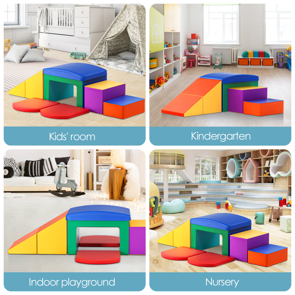 Indoor Soft Foam Climber Play Sets, Toddler Climbing Toys Indoor with Slide Stairs and Ramp Indoor Climbing Toys for Kids and Children, 6 Piece(Colorful)
