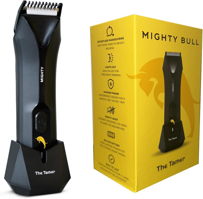 - BUILT FOR BALLS: At Mighty Bull, we built an electric ball trimmer from the ground up. Our groin trimmer ‘The Tamer’ has a stainless steel cutter head, three adjustable clipper guards, a charging dock, an extra USB-C cable, and a cleaning brush. You can take it on the road and keep the bush at bay, wherever you are.
