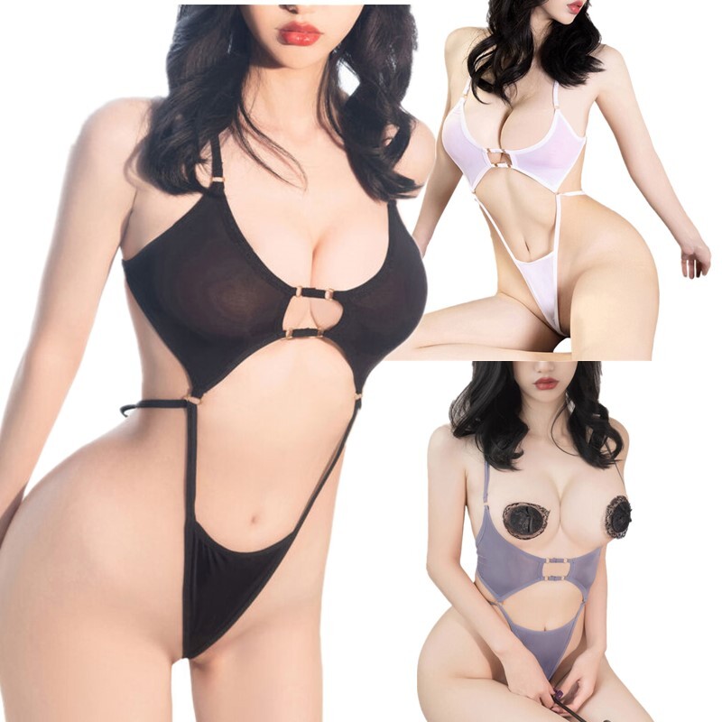 Stretchy fabric will enhance your slender and shapely body; see-through bodysuit has glossy looking to make you more charming.