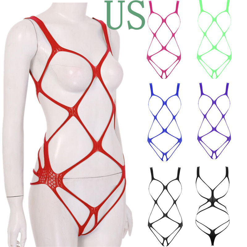 US Womens Oil Glossy Bodysuit Full Body Jumpsuit Lingerie Bodystocking Nightwear
