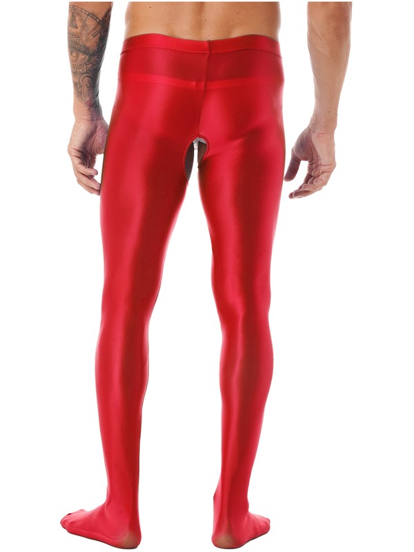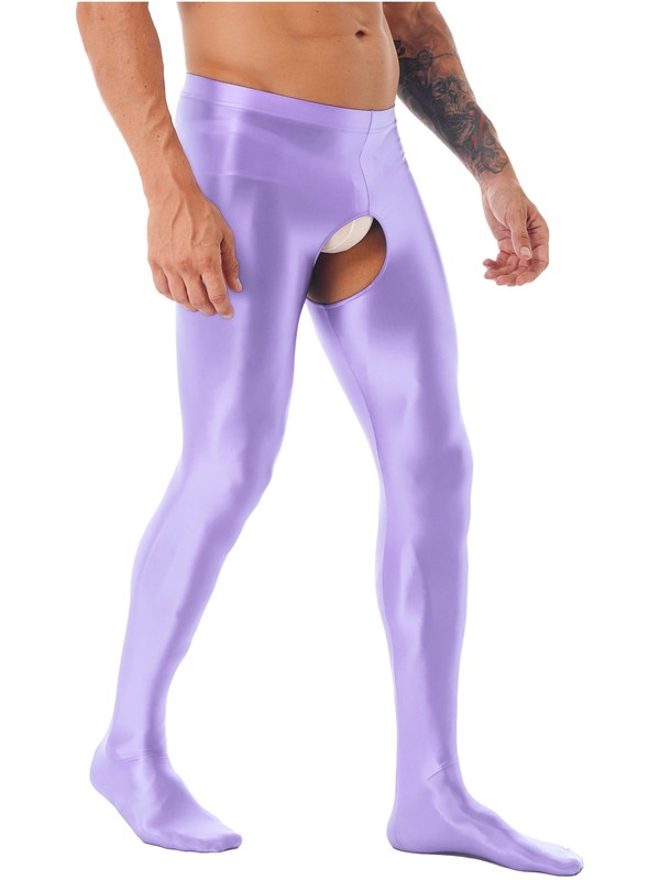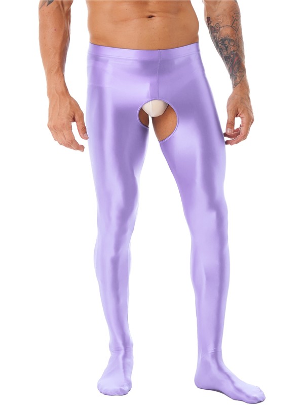Mens Glossy Crotchless Pantyhose High Waist Elastic Waistband Leggings Nightwear.