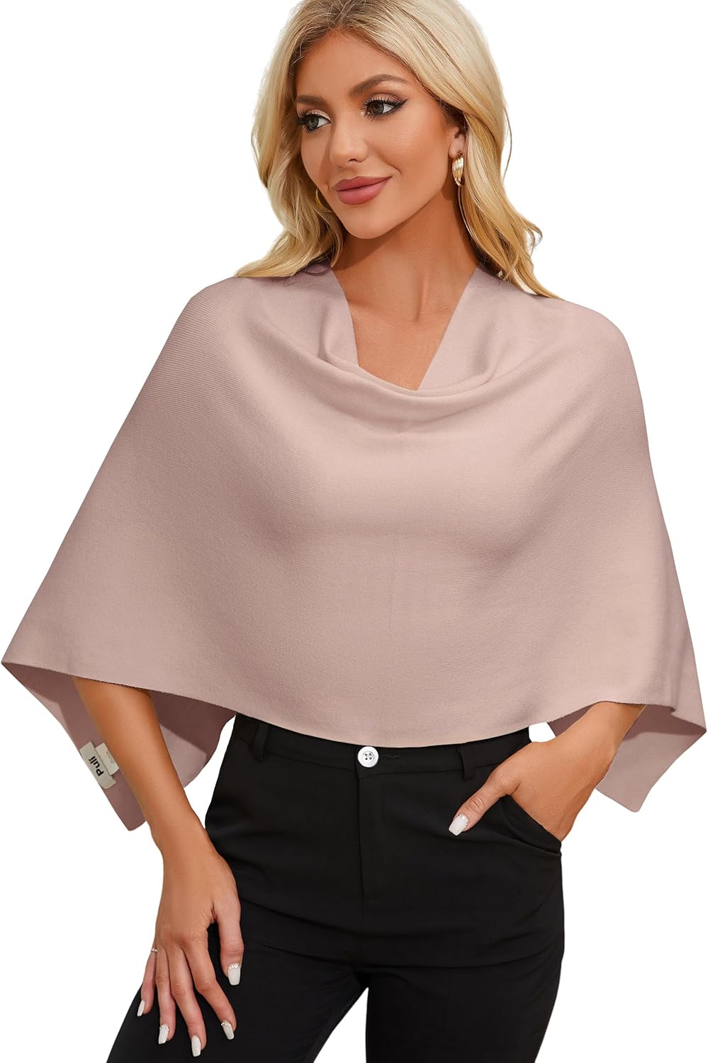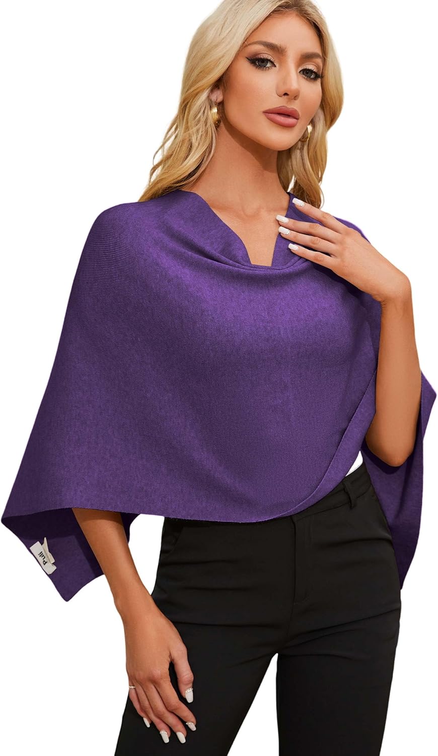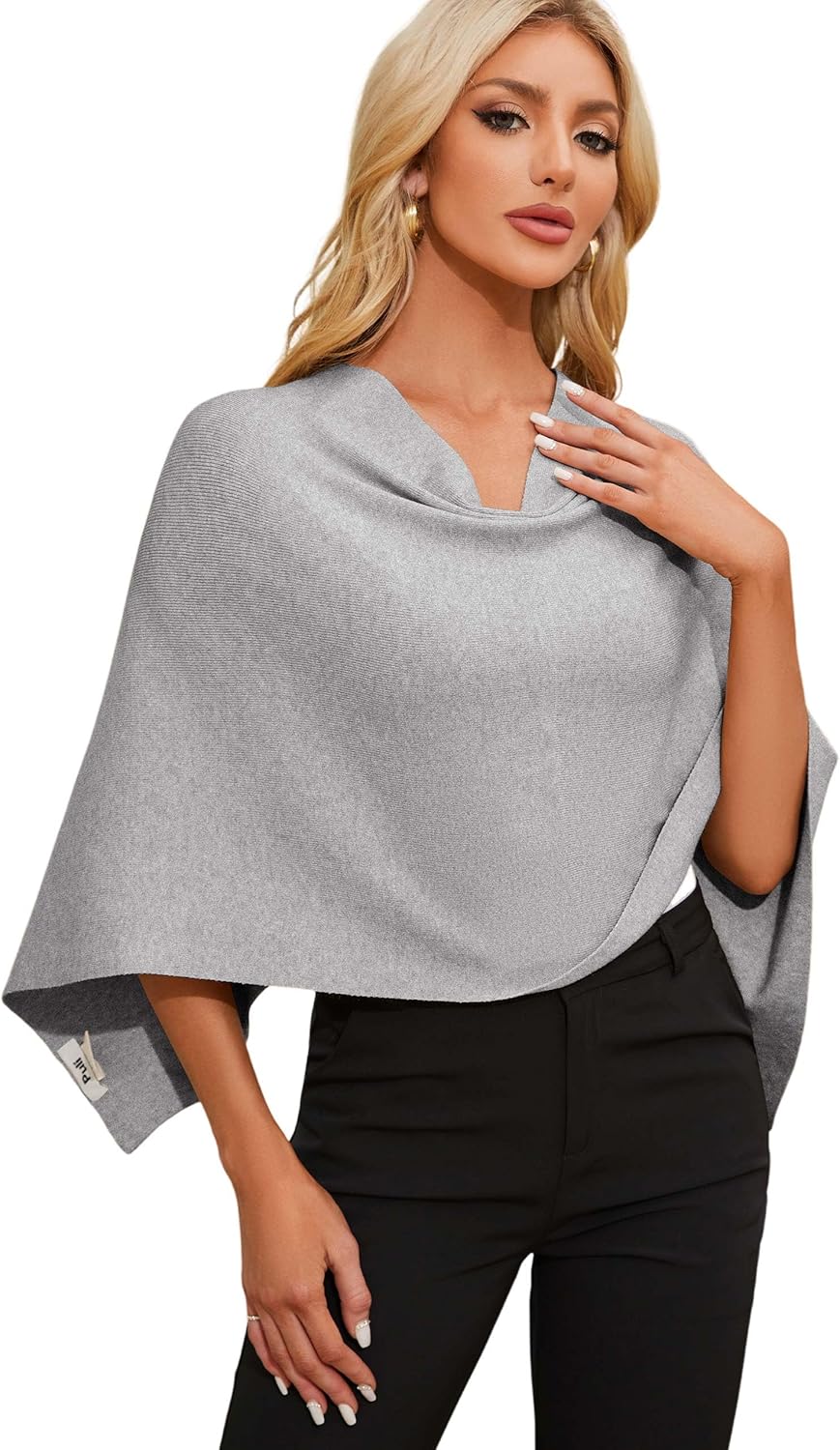 Fabric type: 50% Viscose, 28% Polyester, 22% Nylon. One size: Capri ponchos is a shorter “mini” poncho,pretty style. This style complements a more petite or slender frame.The model is 5'7"tall and weighs 114 lbs. Soft fabric:Beautiful cut and knit just soft enough.This is lightweight yet warm poncho.The fabrics are stiff, smooth and stretchy, so they are wrinkle resistant, they're sure to be your go-to wardrobe items when packing. Versatile design:The ponchos can be worn multiple ways, The V is on the back,front or sides, giving you a range of looks to try!It's easy to wear and go with everything,dresses.pants,skirts.Wear it in everyday or fashion style. Collocation:By mixing and matching skinny Jeans,ankle Boots,High-Waisted Skirt,or other pieces, you can create cohesive and stylish outfits featuring batwing sleeve crewneck garments for various occasions. Occasions:Everyday wear with a comfortable yet stylish look,Casual outings,Work at the office,A chic choice for a dinner date or evening out.Perfect for relaxing at home and travel.