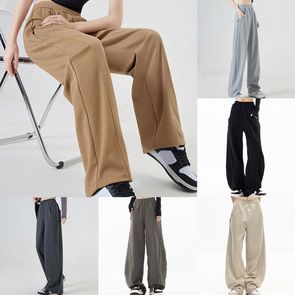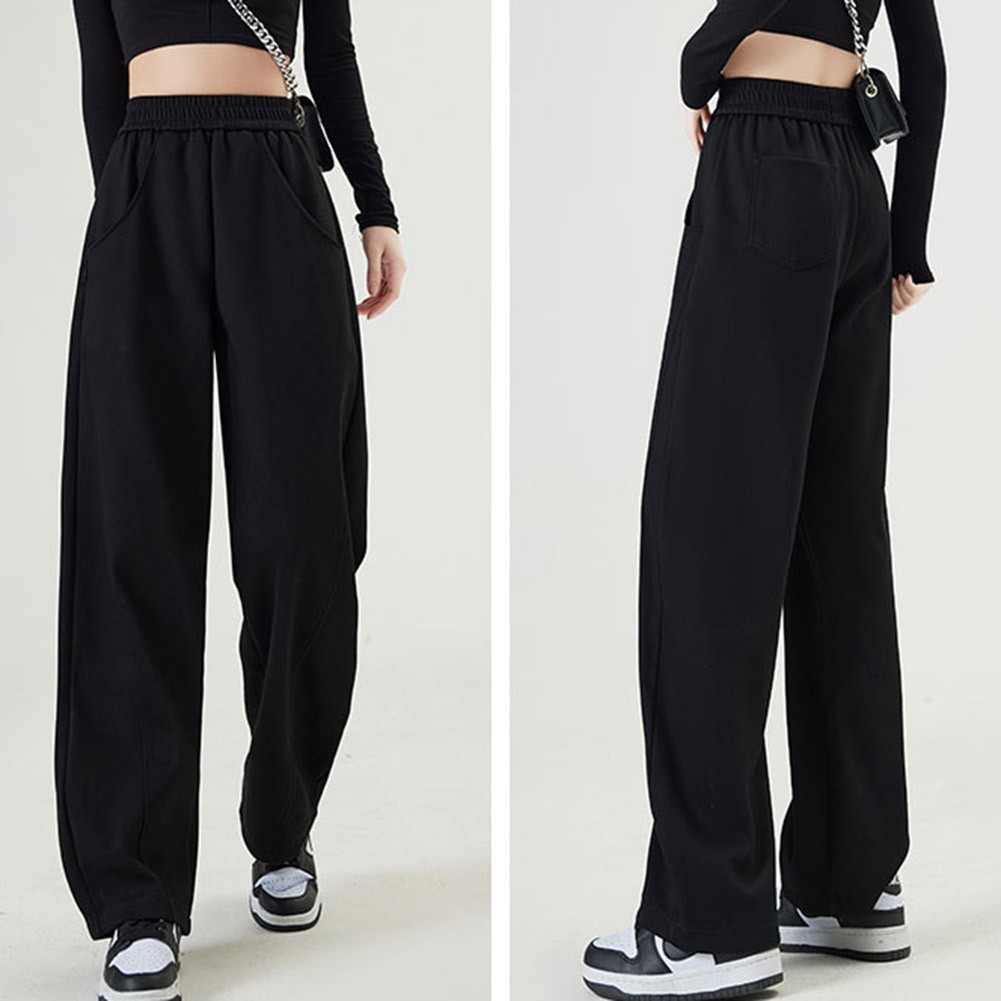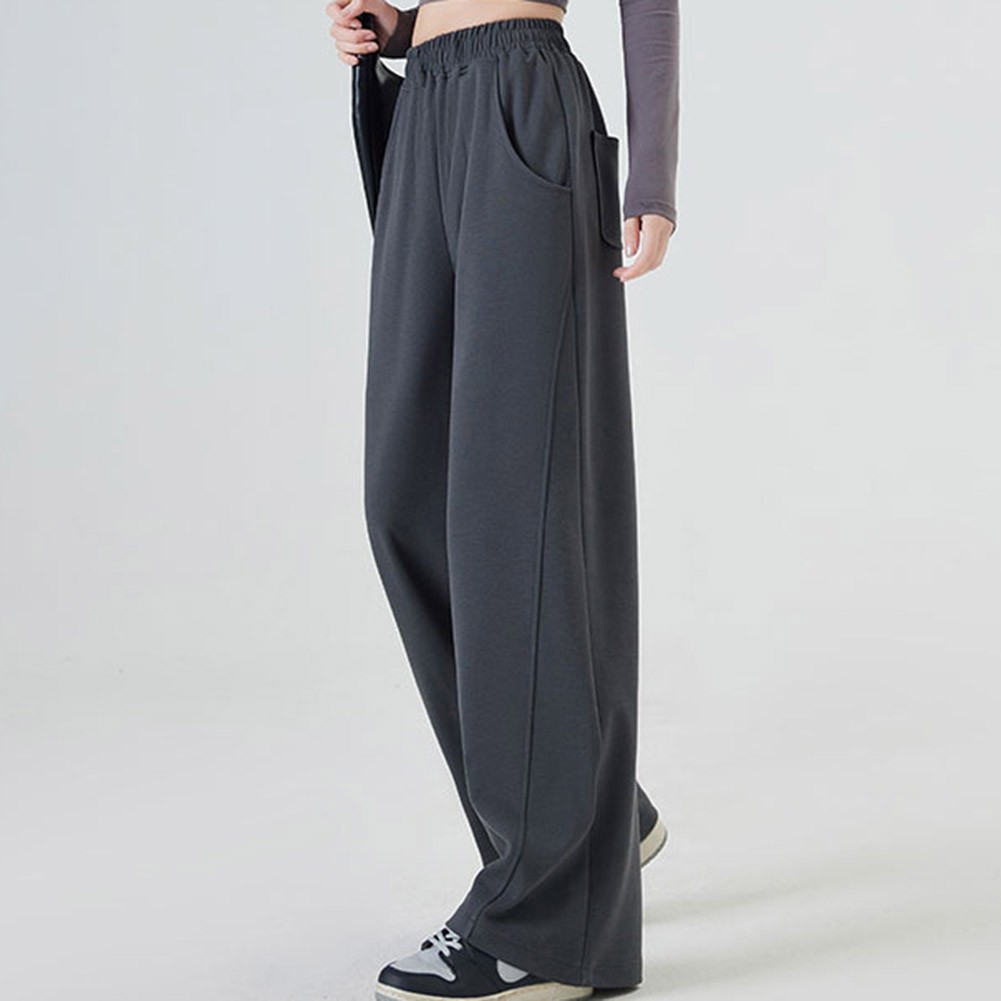Ladies' Solid Color Fashionable Casual Pocket High Waist Wide Leg Pants