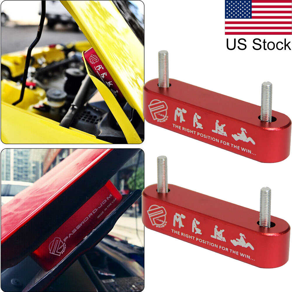 2PCS Red JDM PASSWORD Billet Hood Spacer Riser For Acura Integra Honda Civic Etc