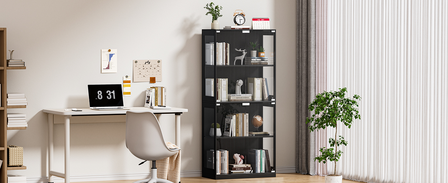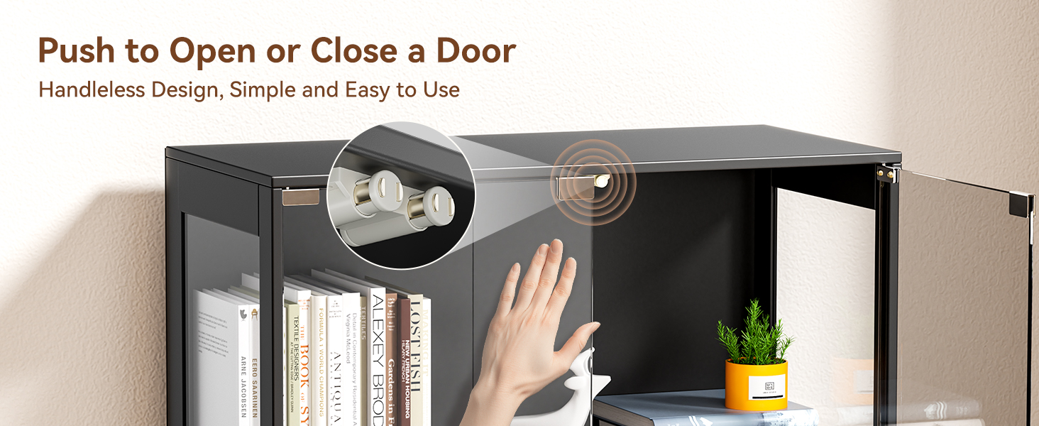 High-end Materials, Exquisite Craftsmanship:Meulbaty Display cabinets features a tempered glass door with acrylic sides, offering high transparency and explosion-proof performance. The MDF wood frame is environmentally friendly, odorless, and durable. Bookcase features silent hinges and a push-button door opening design for smooth and silent operation. Sealed against dust and moisture, display cabinets with glass doors allows for a clear and comprehensive viewing experience and protection of your precious collections.