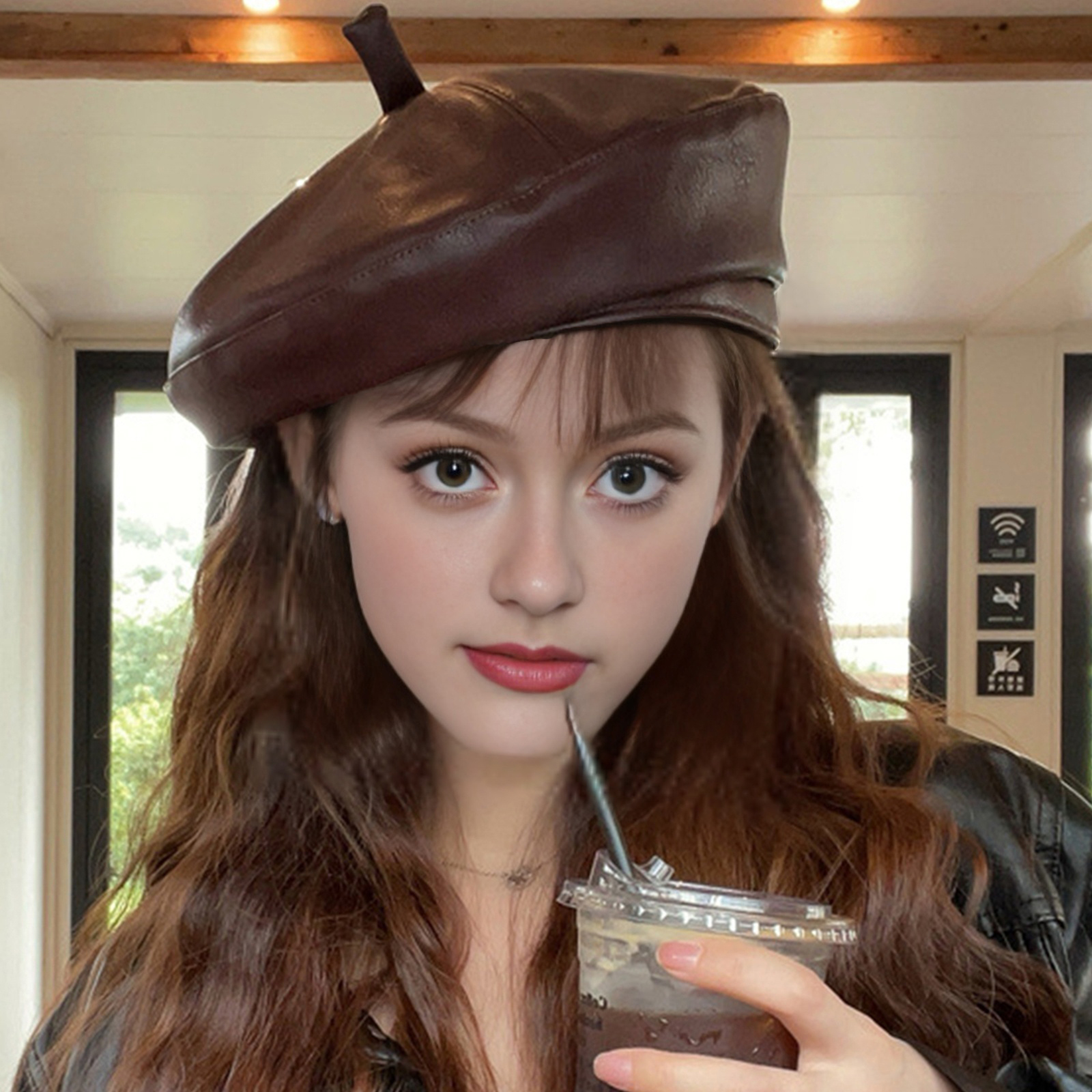 4. Joker style: Leather berets are classic and fashionable, and can be matched with any clothes,