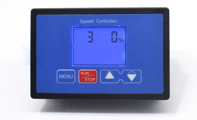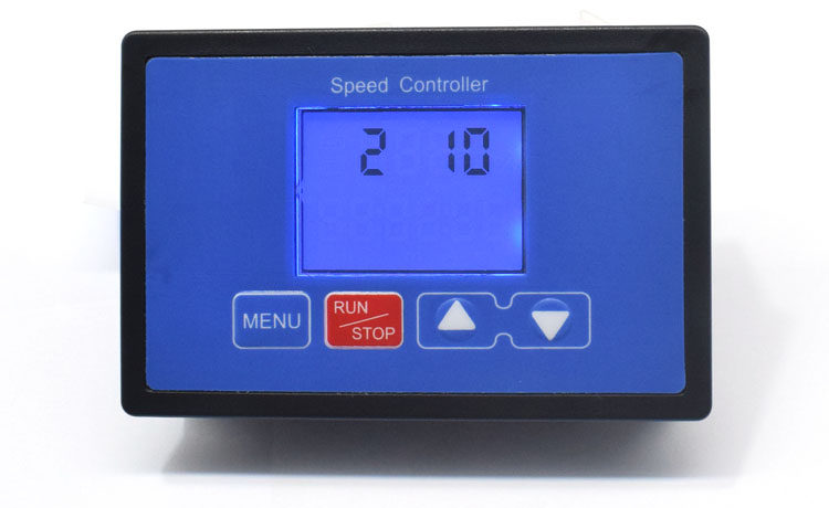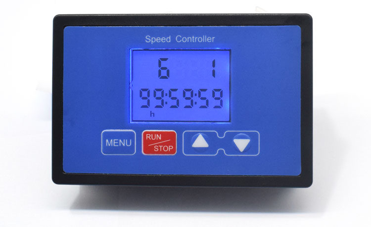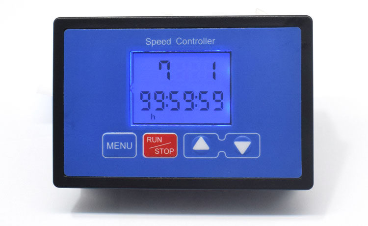 Digital controller with adjustable start/stop time, max/min speed limits, and programmable motor runtime.