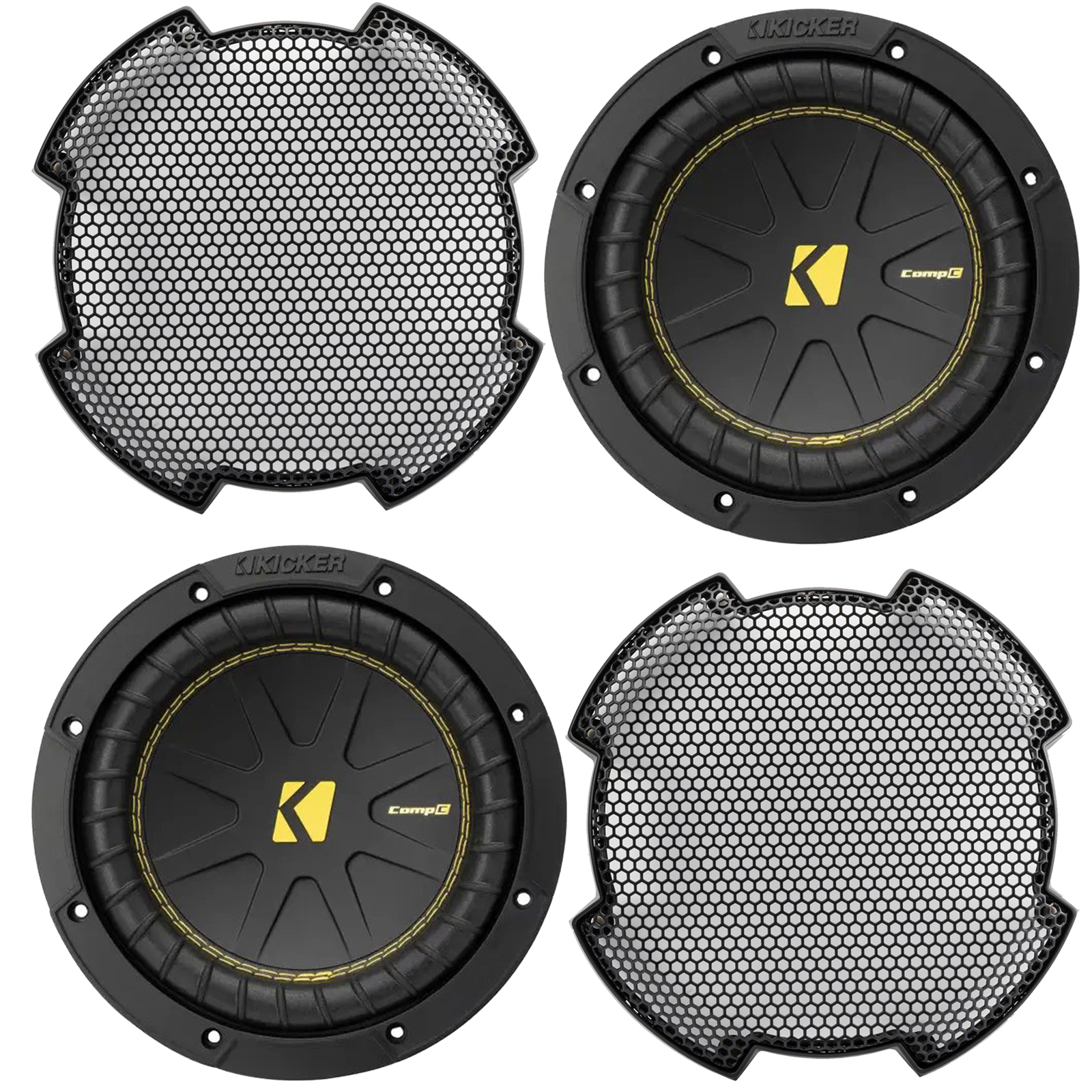 Kicker CWC8 COMPC 8" 400 Watts Max Power 4-Ohm Dual Voice Coil Car Audio Subwoofer (Pair) Bundle Combo With 2x 8" Round Steel Mesh Subwoofer Grille