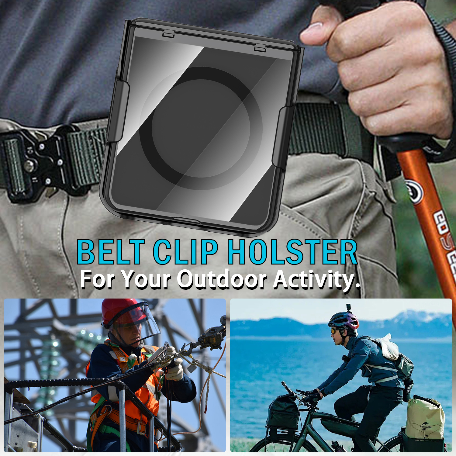 ELECTRO COLLECTION: The Electro series features clear protective front/back panels so you can see the original beauty of your Z Flip 7 phone. Electroplated color trim options. This case offers excellent protection for your screen and hinge....And it comes with a separate belt clip holster/holder!