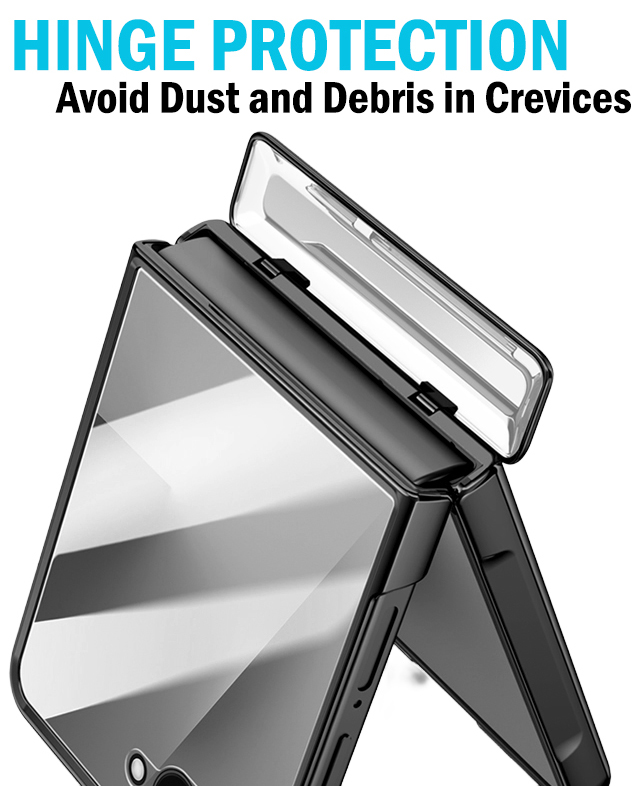 HINGE PROTECTION: The case has dedicated hinge to protect the hinge on your phone. Nobody wants dust and debris in their crack! Mechanism allows the panel to open and close along with the phone.