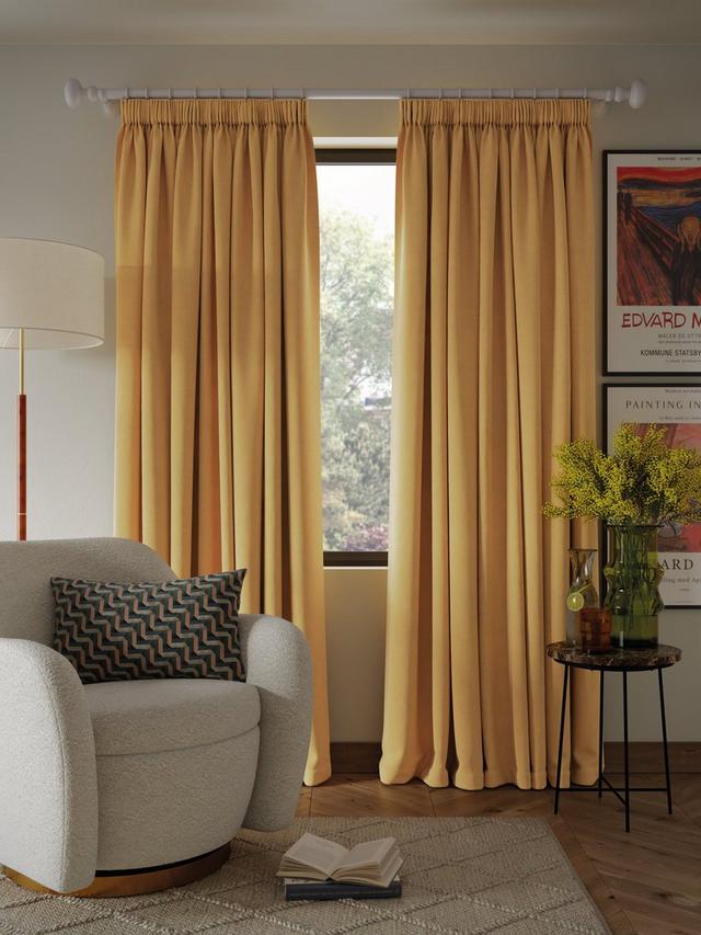 Plain-coloured with a textured weave. The pencil pleat heading creates small, neat folds at the top of the curtain and the blackout lining both eliminates light and lends a full look to the curtains, improving the drape and enhancing the vibrancy of the pattern. Pair with our matching textured weave tiebacks, available to buy in a pack of two.