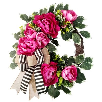 1.Gorgeous and Unique Design: This wreath is full of beautiful pink peonies and high quality greenery. A large farmhouse bow made with black and white stripe ribbon and burlap ribbon is the finishing touch. Decorate your door with a rose-pink peony wreath, adding a touch of romance and elegance to your home.