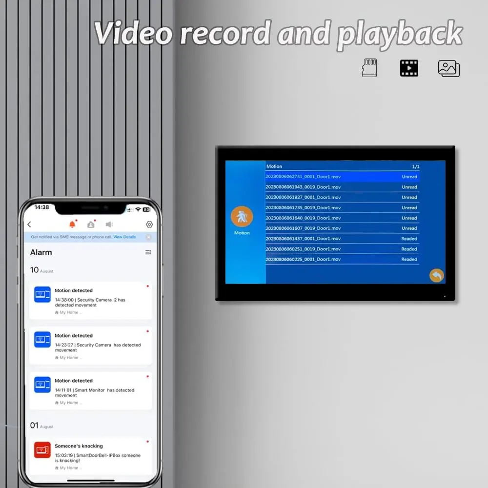 3-in-1 UNLOCKING AND AUTOMATIC VIDEO RECORDING: The device has multiple unlocking methods. You can unlock it by ID card, APP and screen monitor. Very convenient and flexible. When motion detection is triggered, the camera will automatically capture or record video and save it in the monitor's Micro SD card (including 32G SD card). You can view the footage via your smartphone at any time.