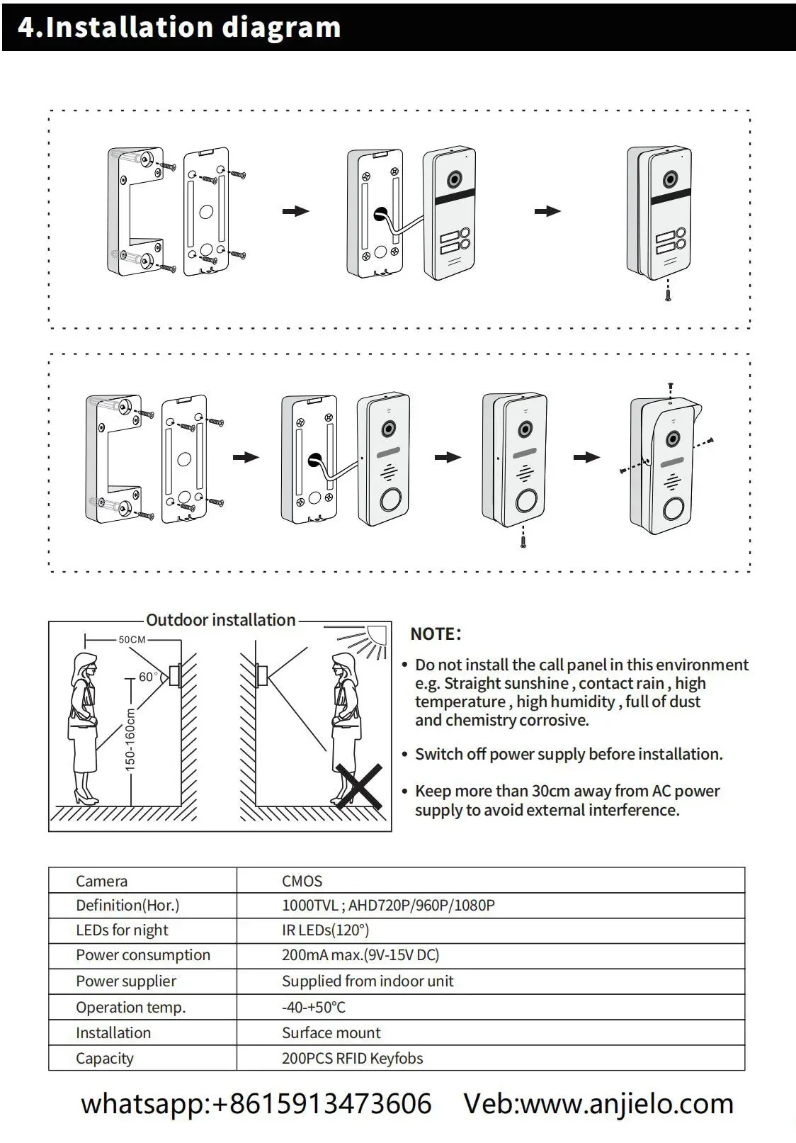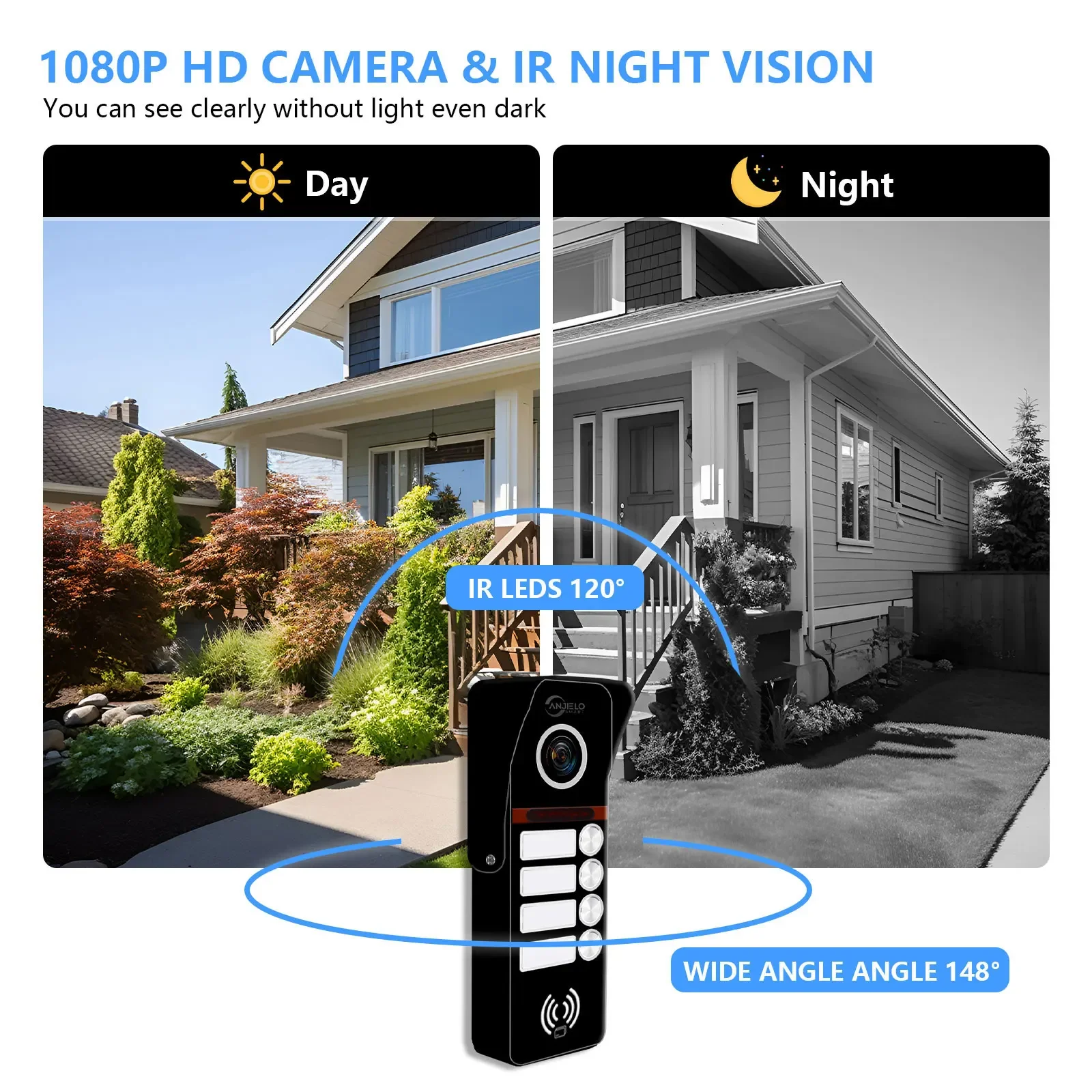 1080P HD IR night vision, IR night vision high resolution access control surveillance camera, easy to install, stable wired connection, suitable for home security.140º wide angle with rain cover, built-in speaker and microphone. Can be used in flats, villas, hotels, offices, public buildings. Support video intercom for up to 12 security monitoring devices.