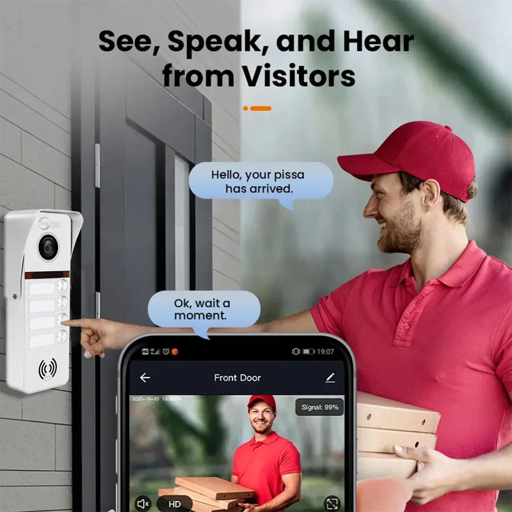 REAL-TIME MONITORING, DON'T MISS ANY VISITOR: With the latest IP technology, when a visitor presses the doorbell, your mobile phone will receive a call from the TUYA APP, you can see, hear and talk to the person outside the door, you can even unlock the door remotely from anywhere with your smartphone, don't miss any delivery or keep your guests waiting.