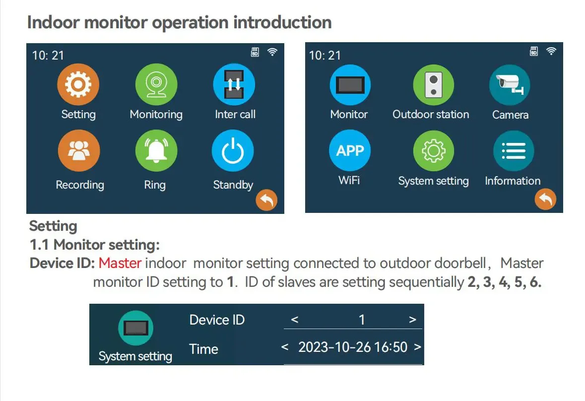 2 UNIT DESIGN: 1 outdoor camera and 2 indoor screens for visual intercom doorbell system, supports two occupants in one building. Individual monitors without interfering with each other