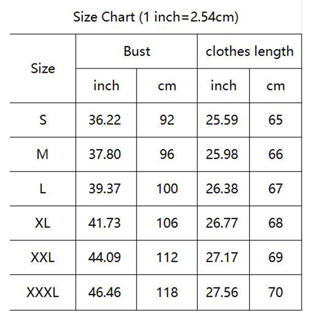 Size Chart (1 inch=2.54cm)