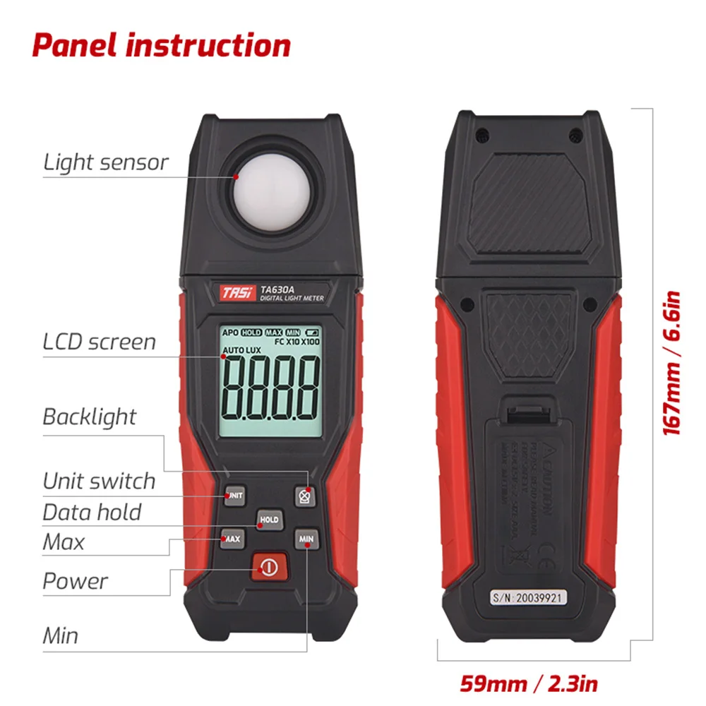 Measurement range: 0.1~20000LUX/0.01~20000FC