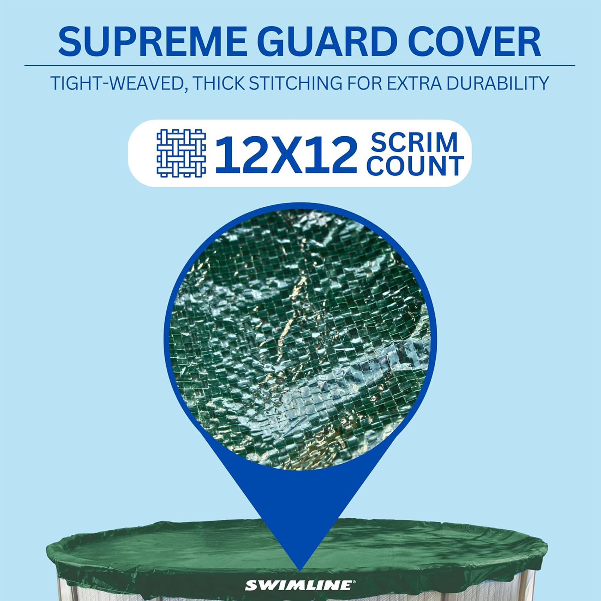 Introducing the SWIMLINE HYDROTOOLS Heavy Duty Pool Covers, your ultimate solution for preserving the quality and longevity of your above-ground swimming pool through the winter season. Designed with the highest standards, our pool covers effectively keep out snow, ice, and debris, ensuring your pool remains in pristine condition, ready for the next swim season.