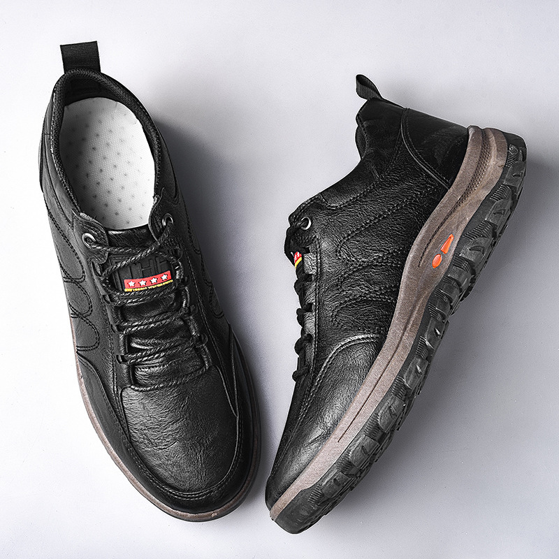 Men's Platform Faux Leather Lace-up Outdoor Running Round Toe Hiking Shoes