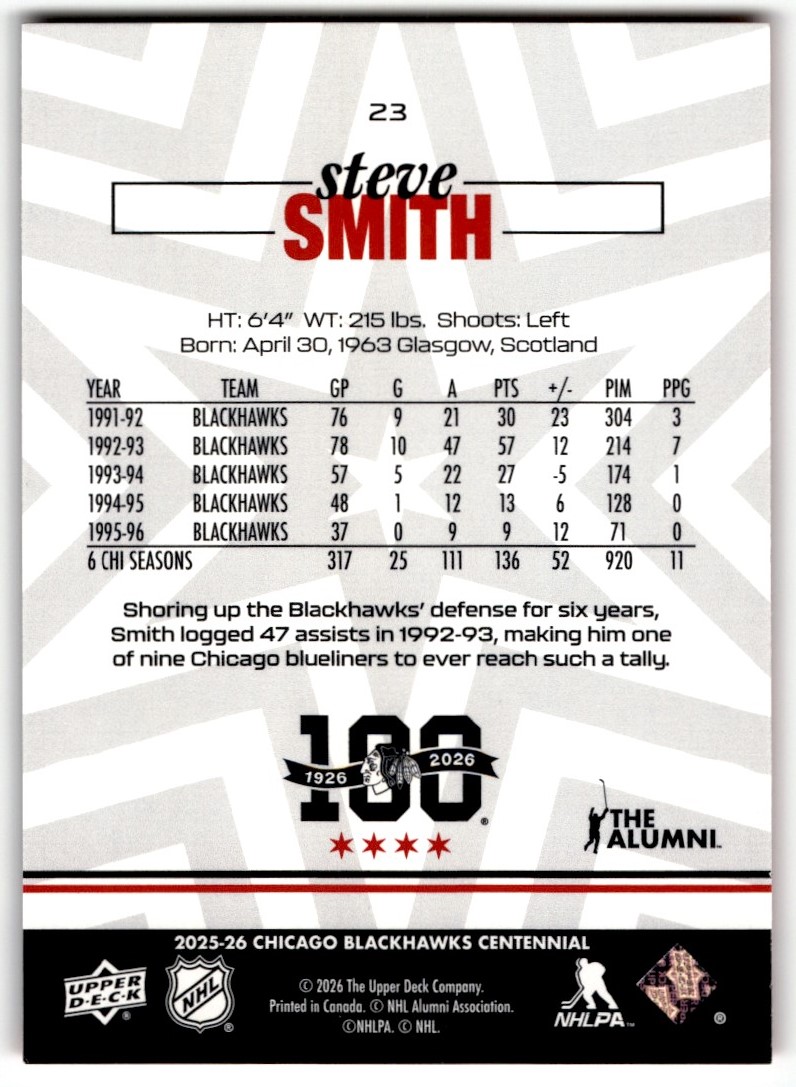 | Steve Smith 2025-26 UD Centennial Chicago Blackhawks Box Set #23 | ||||||||||||||