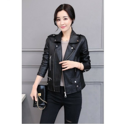 Women Motorcycle Faux Leather Jacket Biker Short Coat Slim Korean Fashion 4XL L