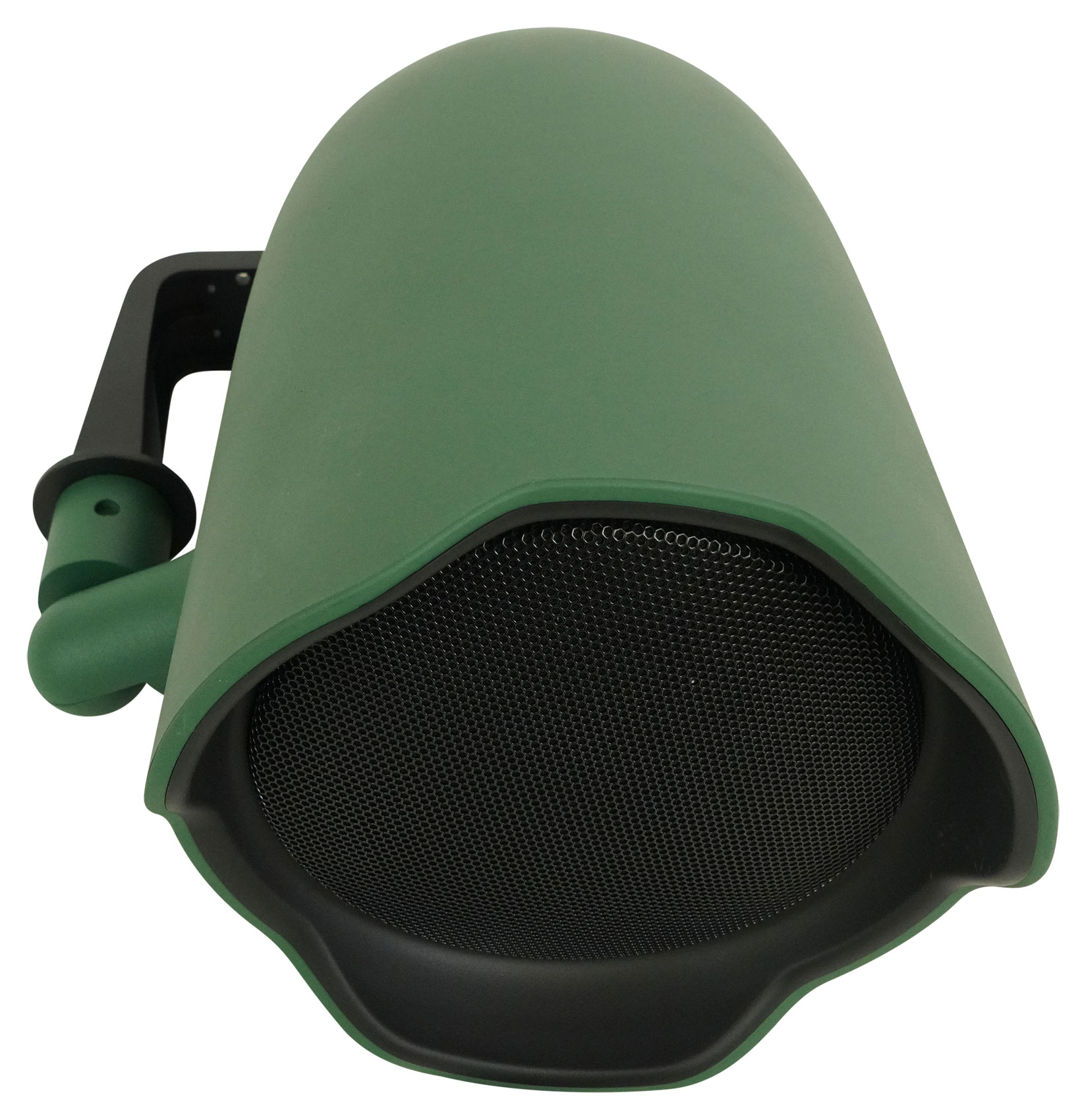 Versatile mounting options include a ground stake for in-ground installation and an L-bracket for secure mounting on either horizontal or vertical surfaces (both are included). A low-profile, unobtrusive speaker, the GSF6 blends right into its surroundings, and is aimable for precise coverage via an adjustable hinge. Available in hunter green and tan finishes.