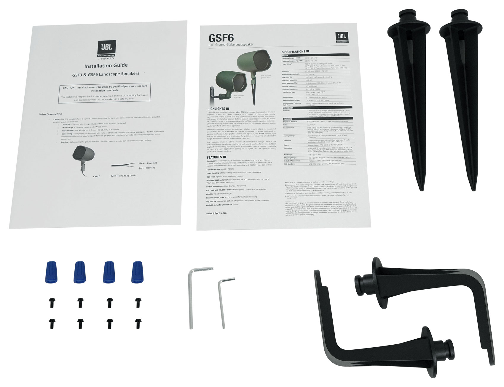 The mid-size, weather-resistant JBL GSF6 landscape loudspeaker provides superior fidelity and wide coverage in a range of outdoor commercial applications, with a custom two-way coaxial 6-inch driver system that delivers full-range, crystal-clear sound. (Extend system bass response with JBL GSB8 or GSB12 in-ground landscape subwoofers.) This versatile speaker features a 30-watt multi-tap transformer for use on 70V/100V distributed systems and is switchable for 8-ohm direct operation.