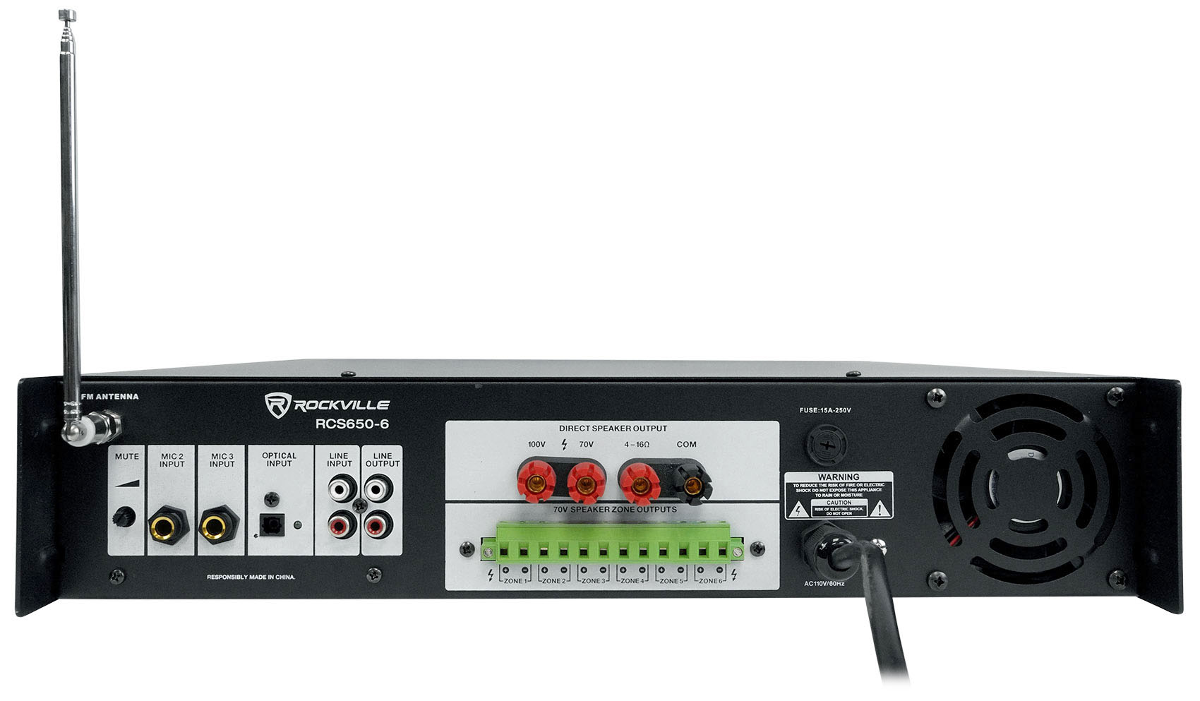 If you want an easy to use feature-rich 70 volt amplifier with a ton of power and 6 zones the Rockville RCS650-6 is your best choice!