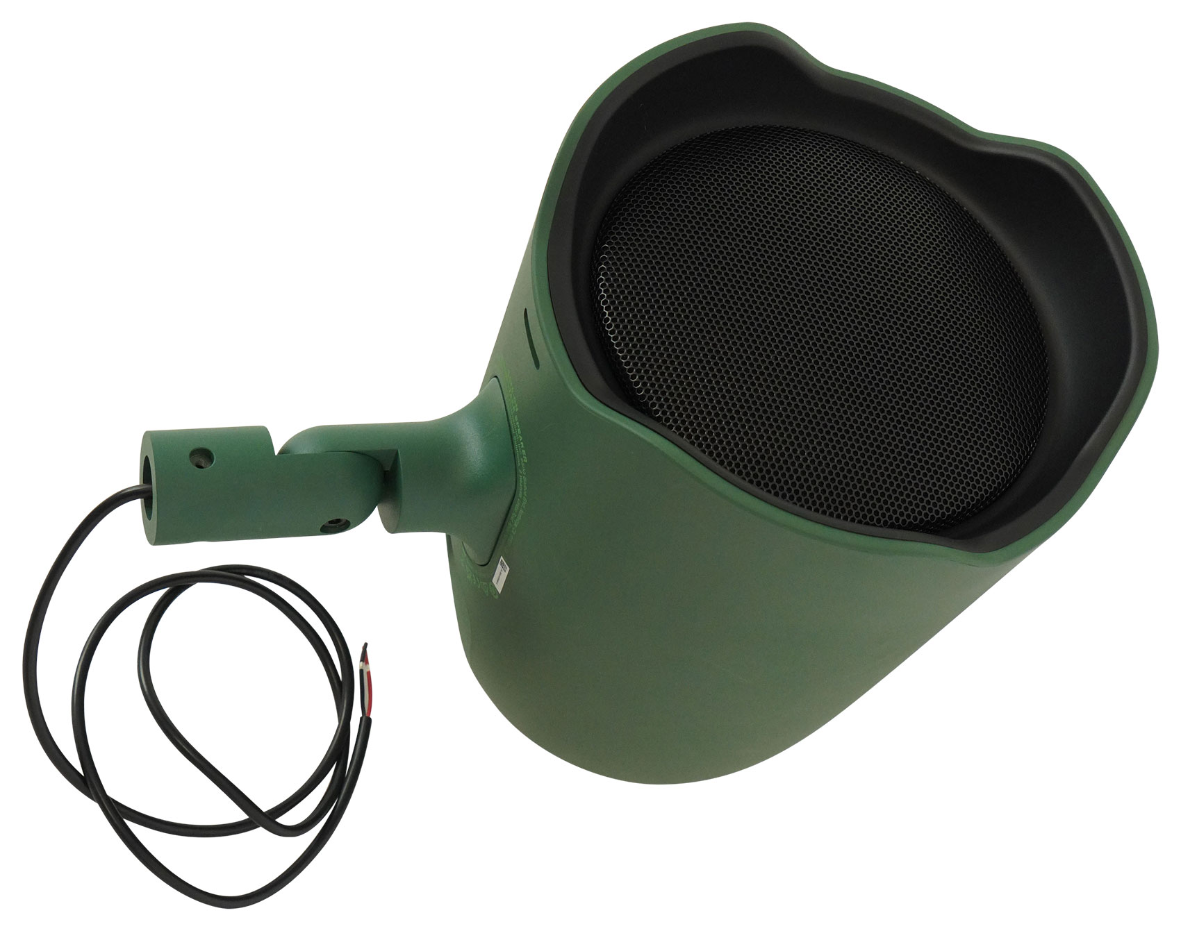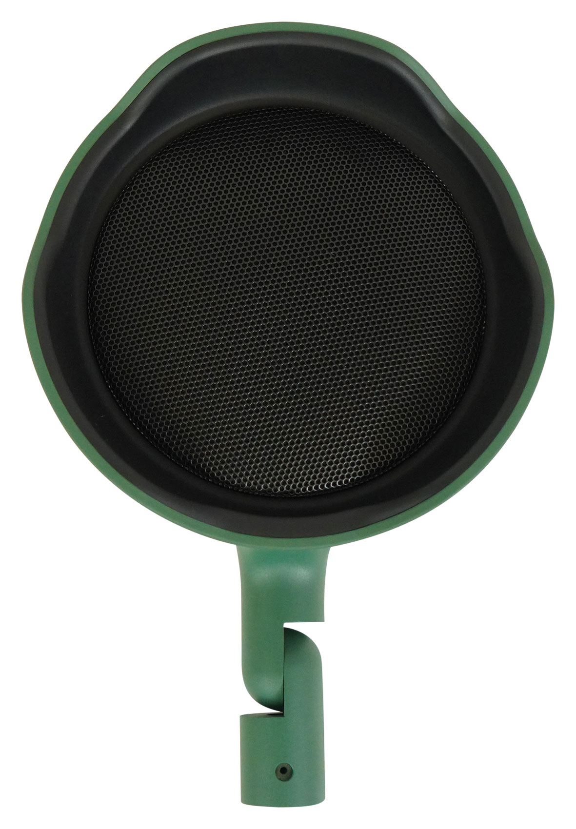 Versatile mounting options include a ground stake for in-ground installation and an L-bracket for secure mounting on either horizontal or vertical surfaces (both are included). A low-profile, unobtrusive speaker, the GSF6 blends right into its surroundings, and is aimable for precise coverage via an adjustable hinge. Available in hunter green and tan finishes.