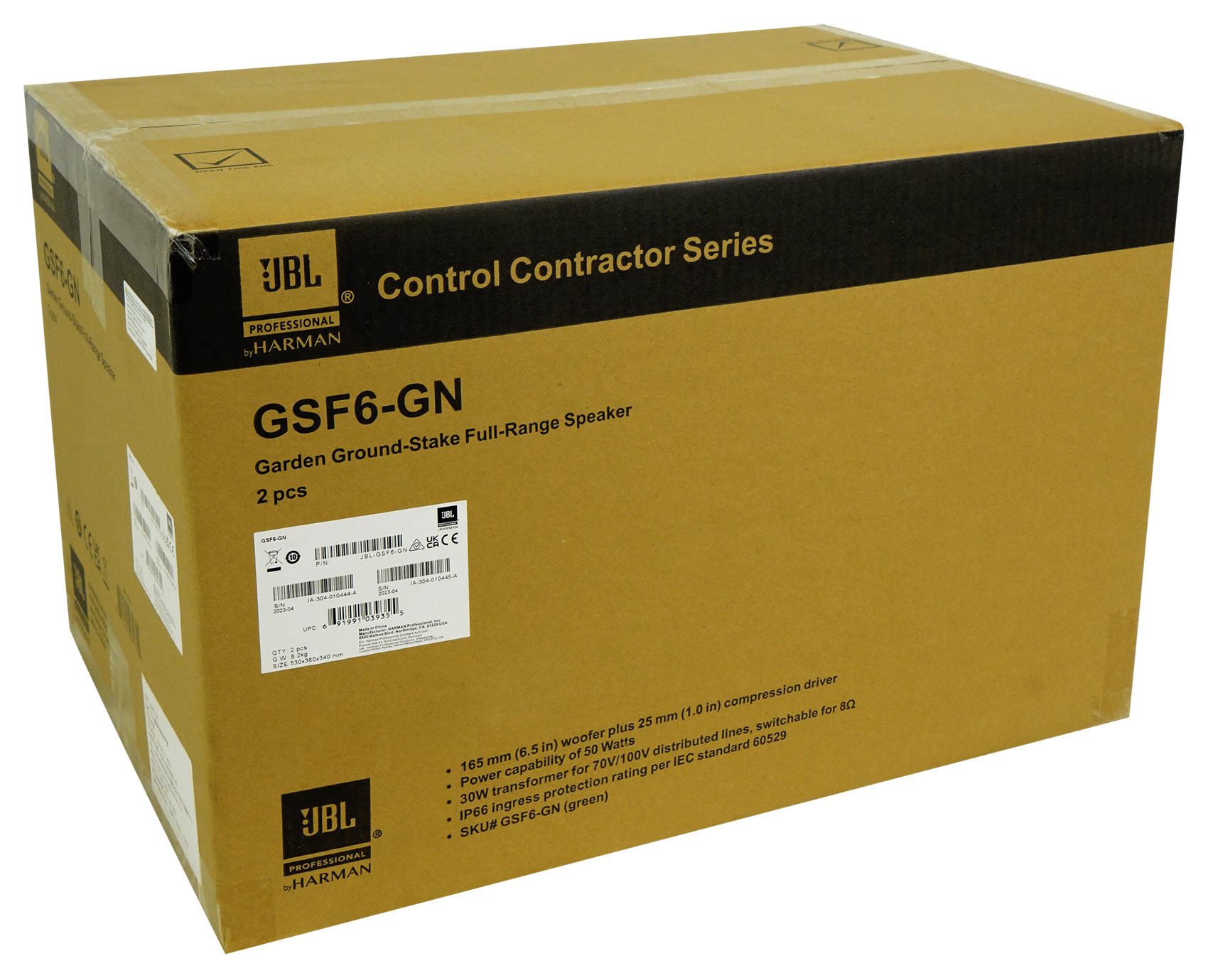 The mid-size, weather-resistant JBL GSF6 landscape loudspeaker provides superior fidelity and wide coverage in a range of outdoor commercial applications, with a custom two-way coaxial 6-inch driver system that delivers full-range, crystal-clear sound. (Extend system bass response with JBL GSB8 or GSB12 in-ground landscape subwoofers.) This versatile speaker features a 30-watt multi-tap transformer for use on 70V/100V distributed systems and is switchable for 8-ohm direct operation.
