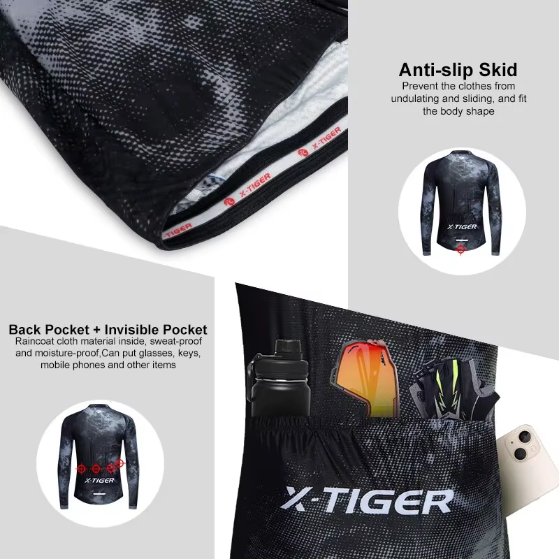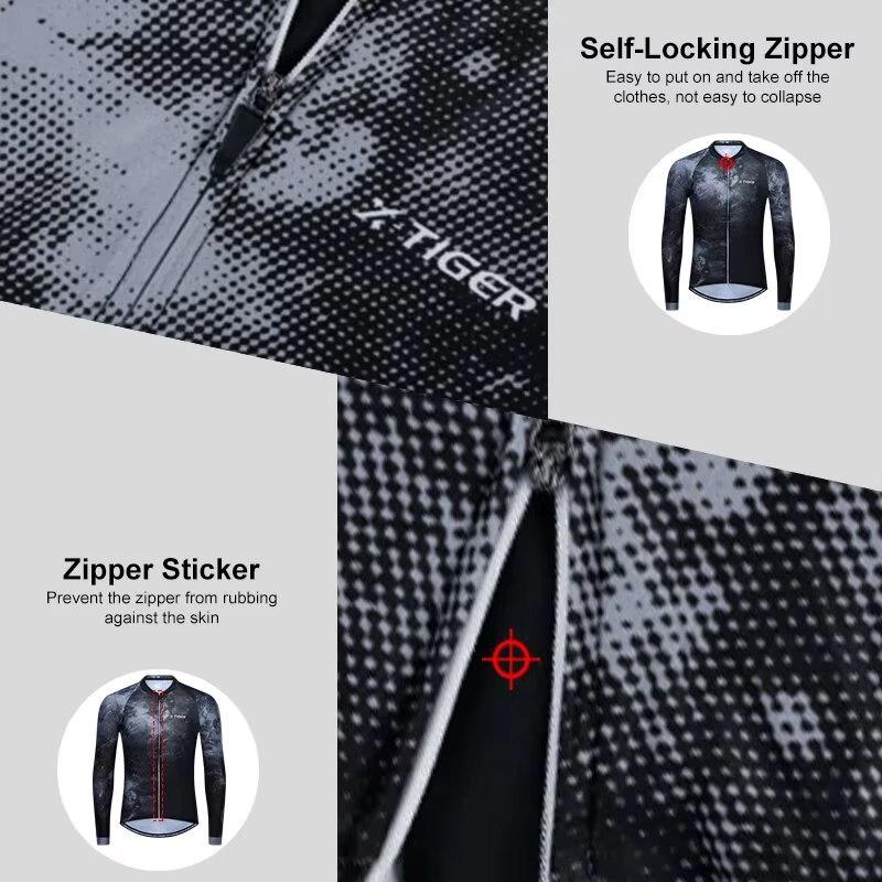 Reflective strips are added to the back of the riding suit to enhance the safety of cycling at night.