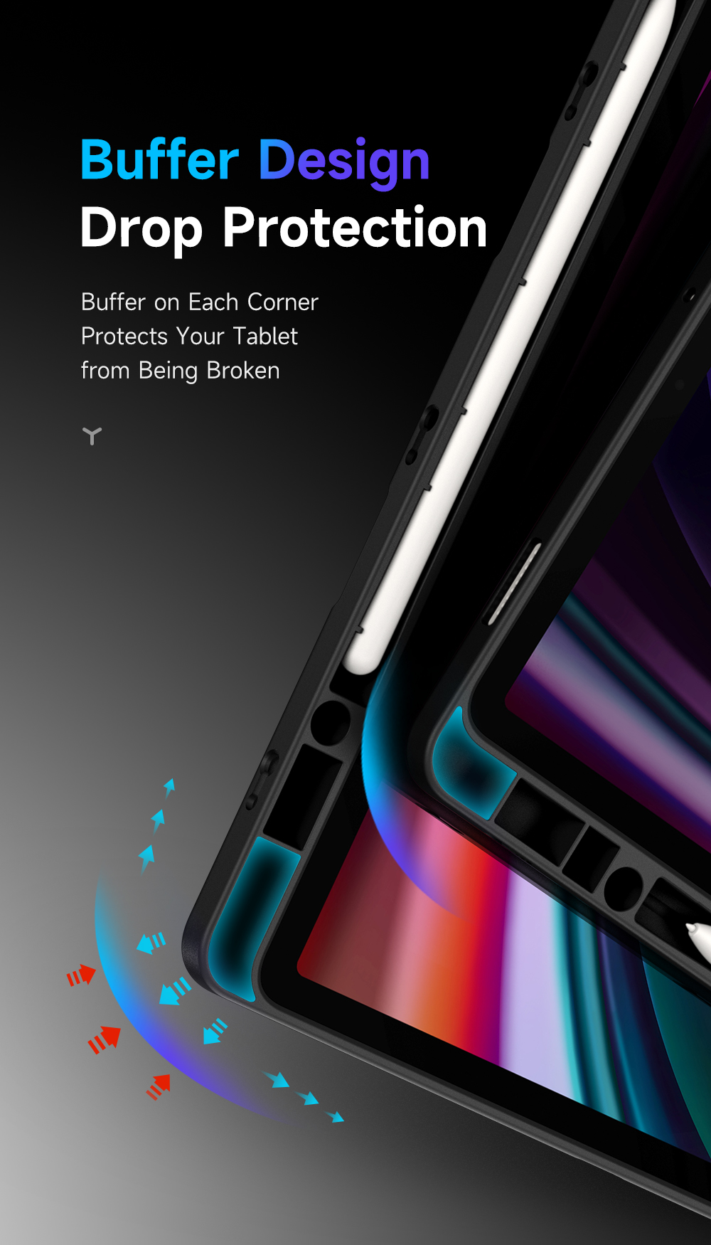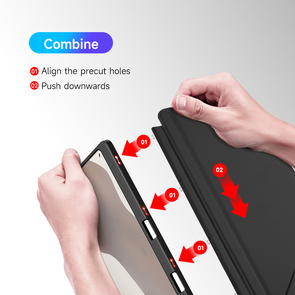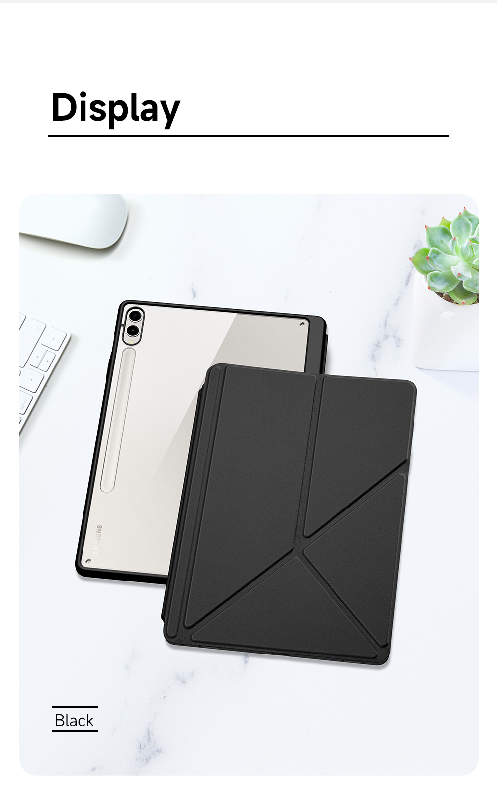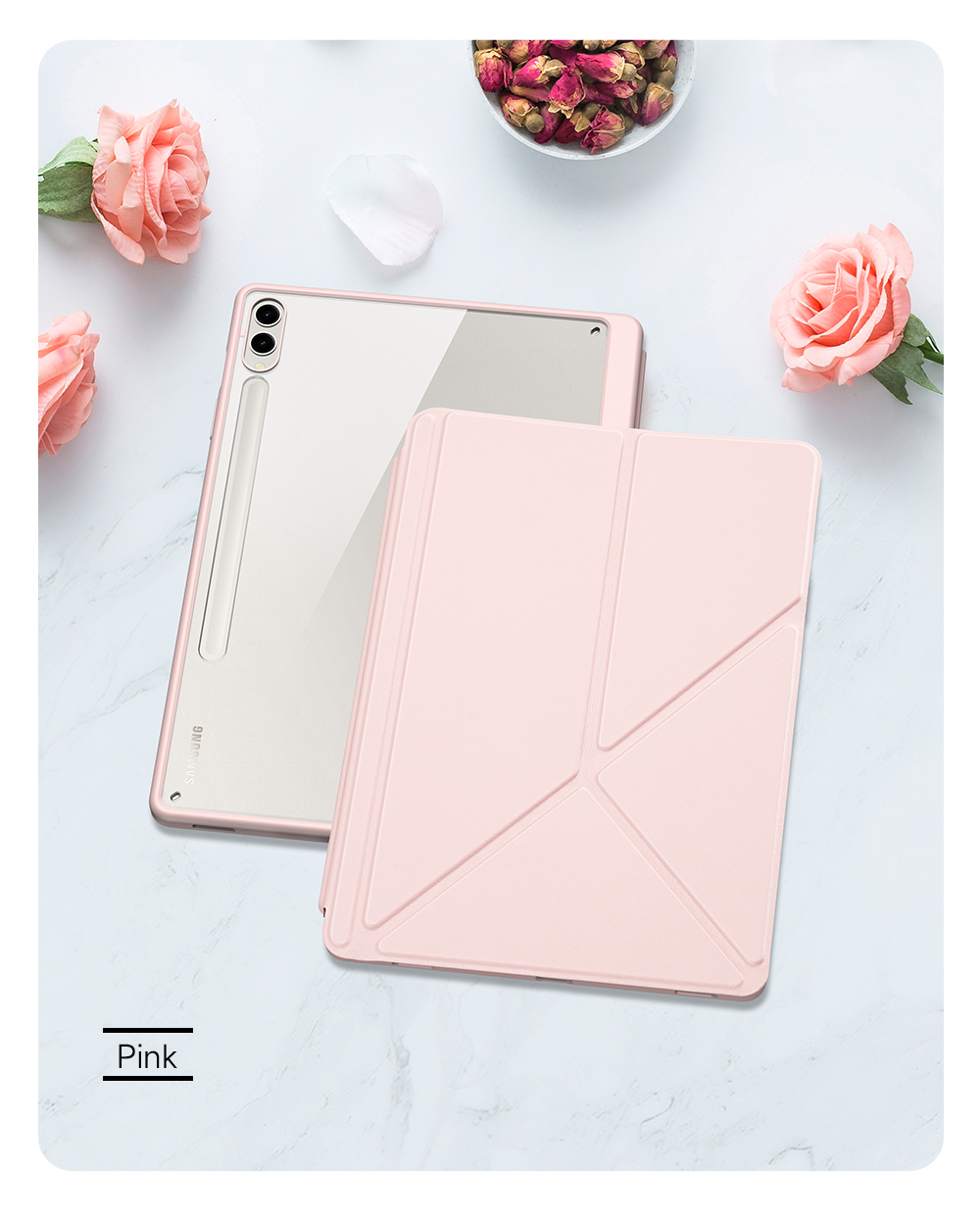Creative front cover offers multiple stand angles to free your hands when viewing, browsing on the tablet. Clear back cover can be detached from the front cover and used independently, which is perfect for playing games on the tablet.