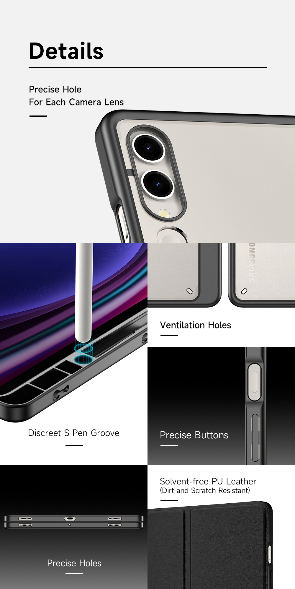Made of premium solvent-free PU leather with clear plastic back cover.