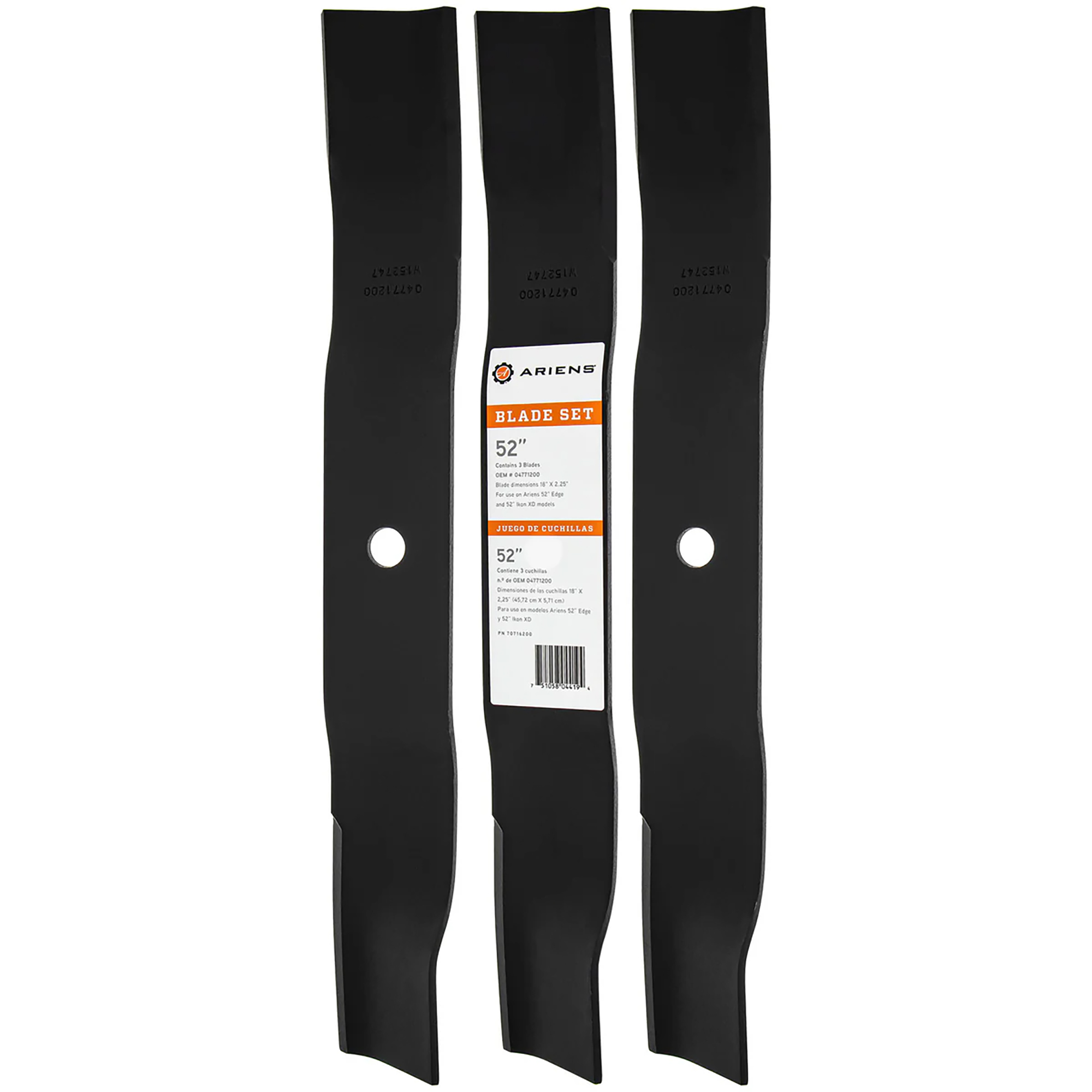 Each kit includes 3 18-inch high-lift blades, each measuring 2.25 inches in width with a 0.63-inch center hole for secure installation. These blades are a direct replacement for select Ariens IKON KD and Gravely EDGE 52-inch or 42-inch deck mowers, ensuring a seamless fit and reliable operation.
