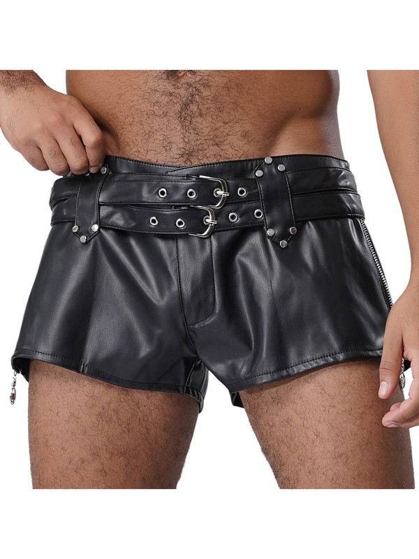 PU leather hot pants with zipper on both sides and adjustable double belts make you look cool and attractive.
