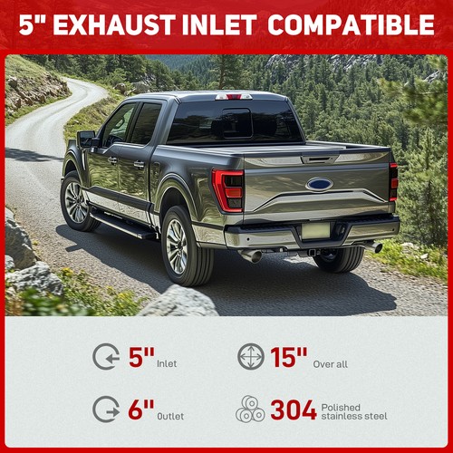 For Ford F-150 F250 XLT XL XLS 5" Inlet to 6" Outlet 15" Exhaust Tip Tail Pipe