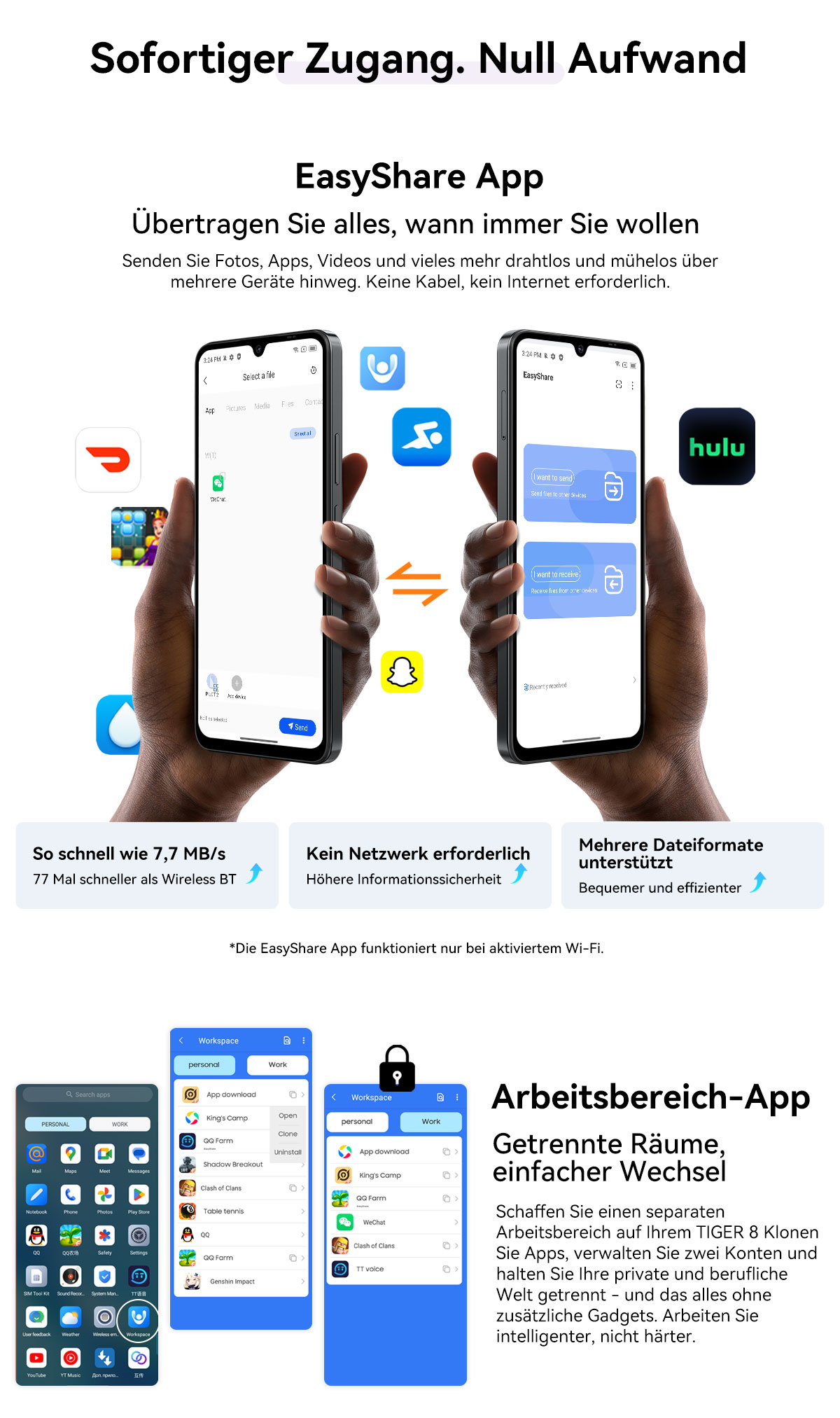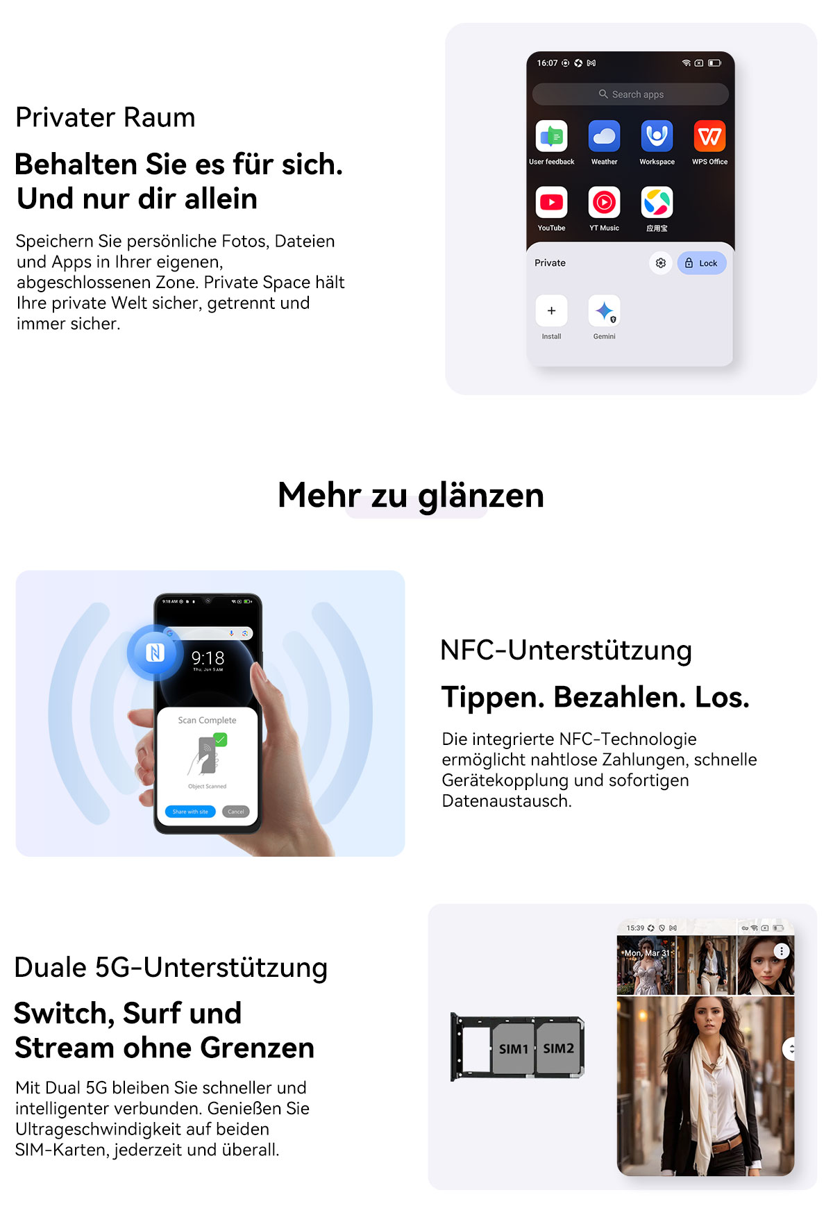 SIM-Slot --------- Zwei Kartensteckplätze ( 2 * SIMs/ 1 * SIM + 1 * TF Karte)