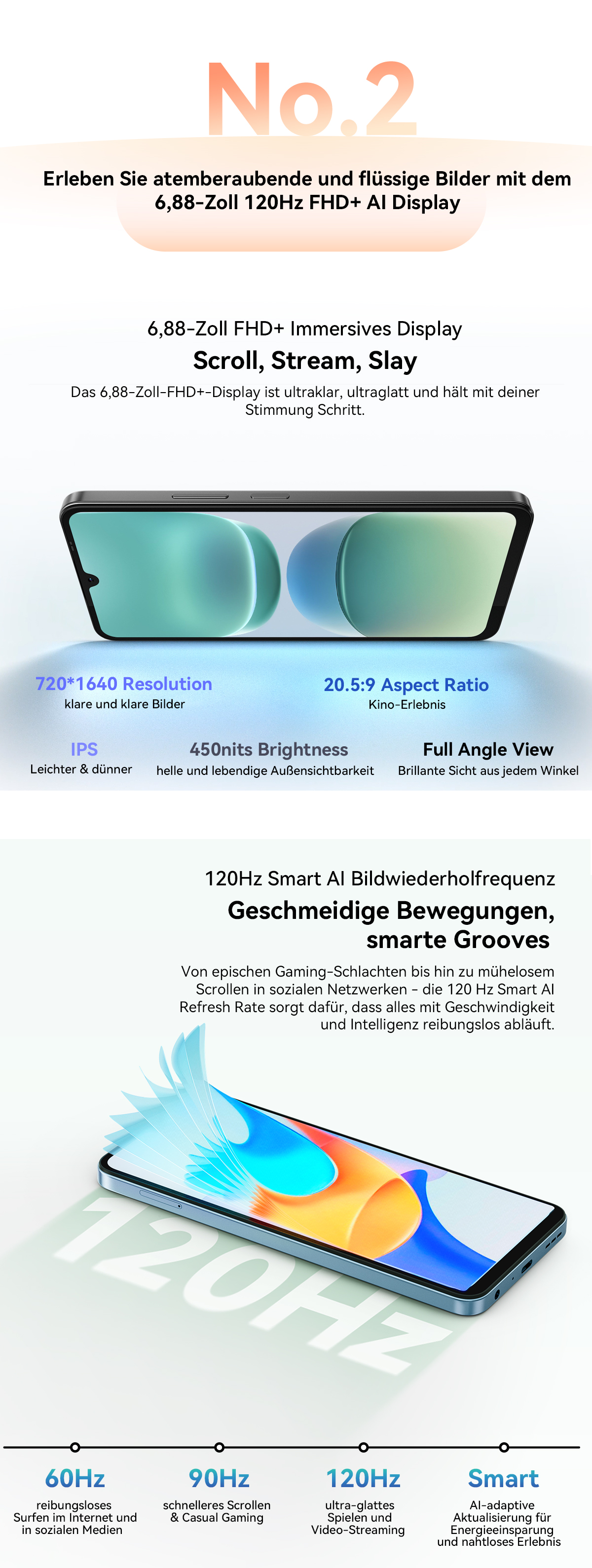 120Hz Bildwiederholfrequenz; 89,7% Bildschirm-zu-Körper-Verhältnis