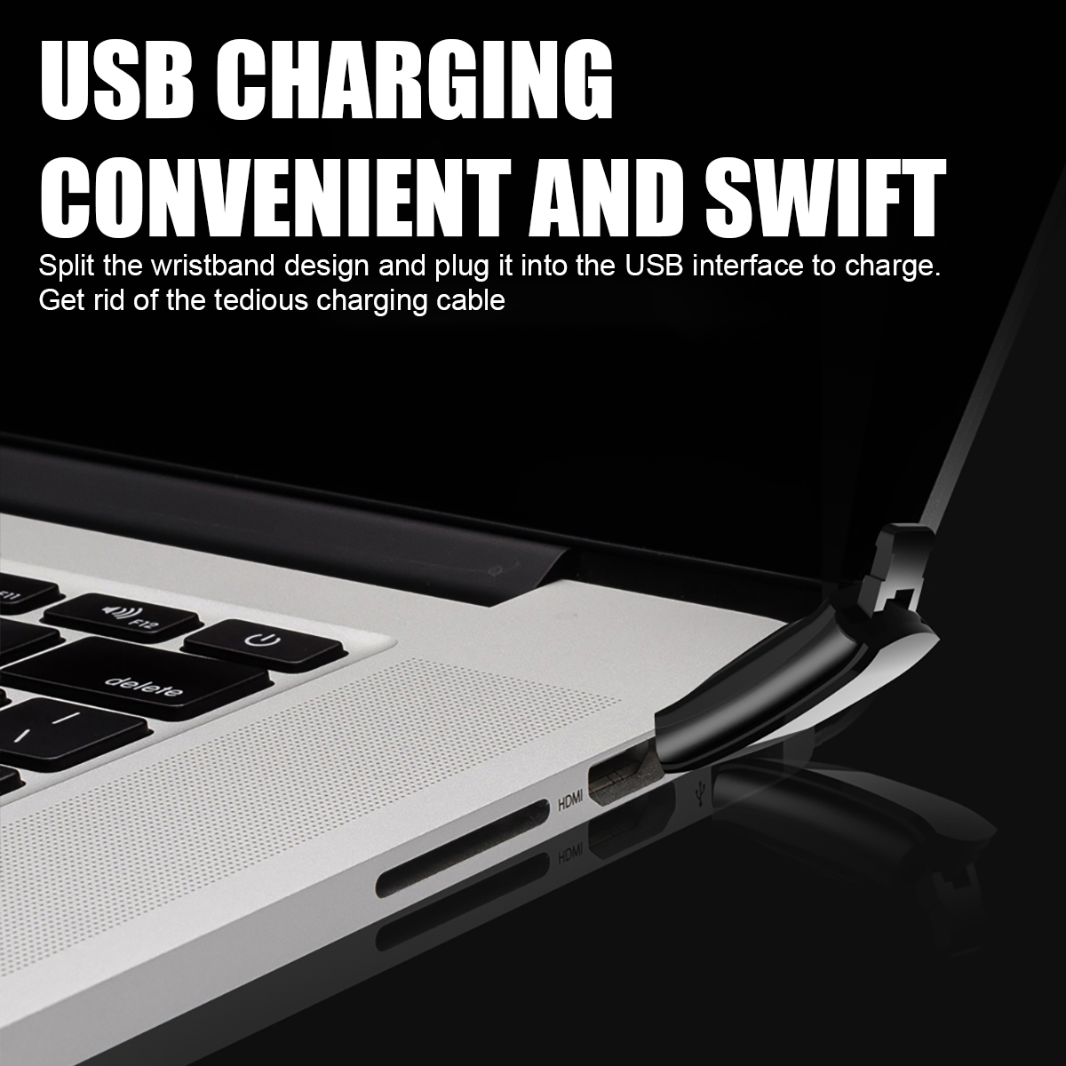 1.USB-Direktladetechnik schwarz ist bequem, schnell das Armband Design ohne Ladekabel zu zerlegen, und stecken Sie den USB-Vorwand zu laden und die umständliche Ladekabel aufgeben.