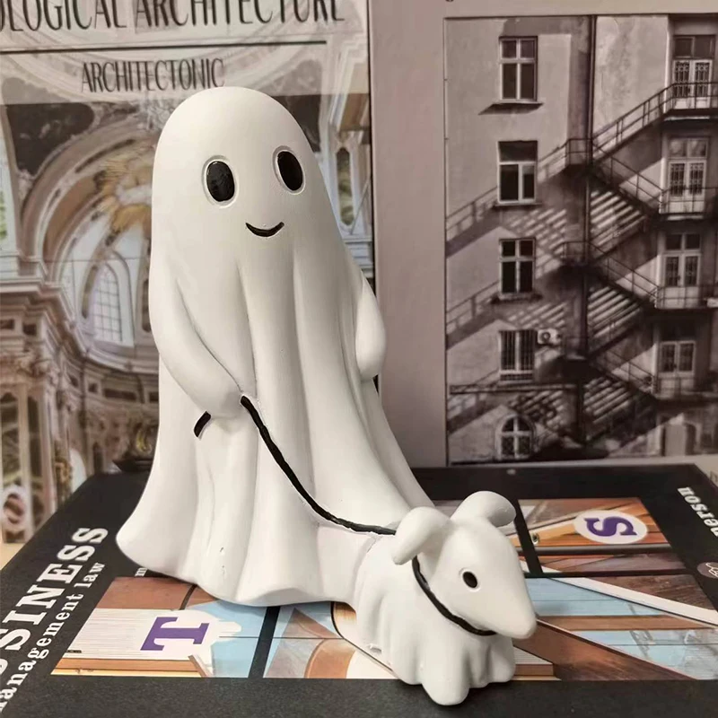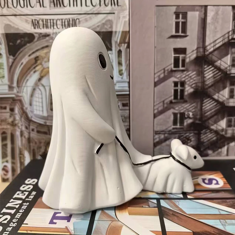 Halloween Ghost Walking Dog Statue Funny Ghost Walking His Ghost Dog Halloween Ghost Dog Statues Halloween Tabletop Decoration Resin Ornaments