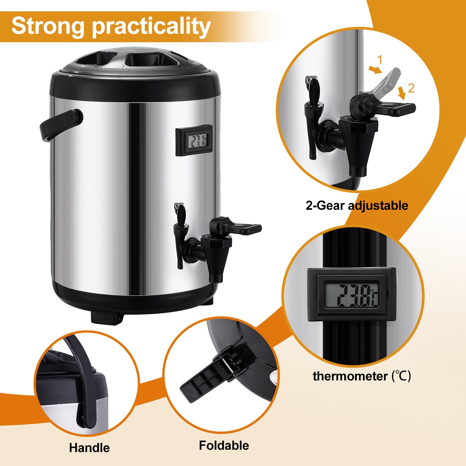 This coffee dispenser is perfect for parties, holding about 3.17 gallons or 12 liters of your favorite brew! With its 304 stainless steel inner tank, it provides good thermal insulation performance. Equipped with a built-in temperature meter and fashionable appearance, it's sure to impress your guests.