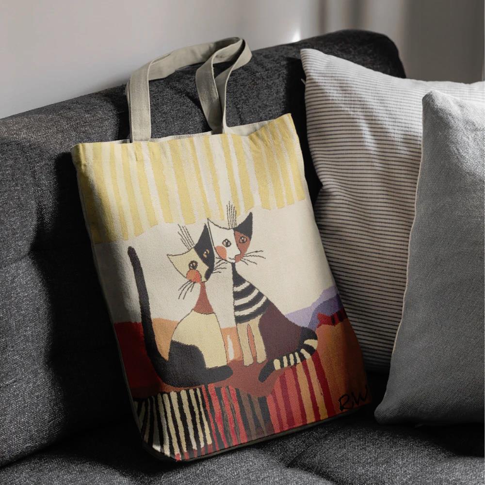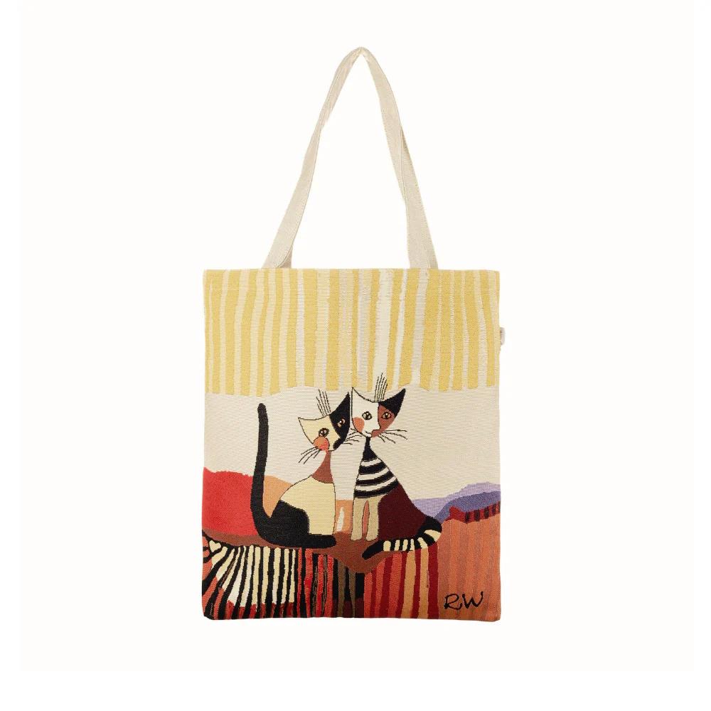 Carry your essentials in style with the Signare Rosina Wachtmeister Cat Flat Tote Bag, a lightweight yet durable shopper that combines artistry with practicality. Showcasing the Cappia Cat illustration, this woven tapestry bag brings Rosina Wachtmeister’s playful feline designs to life with bold colours and exquisite detail. Perfect for art lovers, cat enthusiasts, and fashion-conscious shoppers, it’s a versatile accessory that works for everyday use.